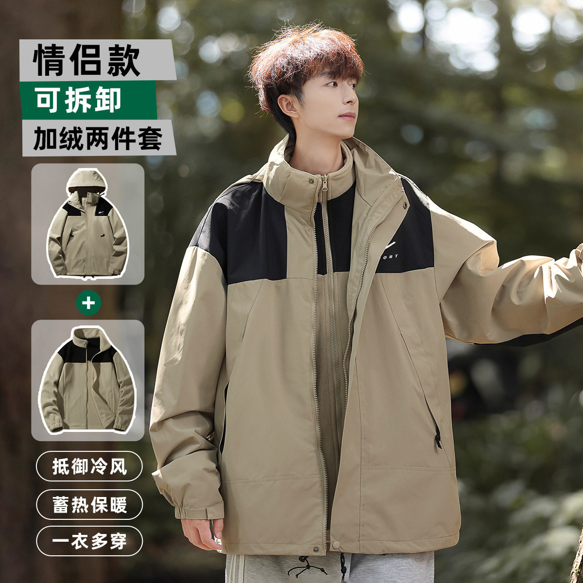 【保暖两件套】男女三合一外套运动户外防风加厚登山服 193555