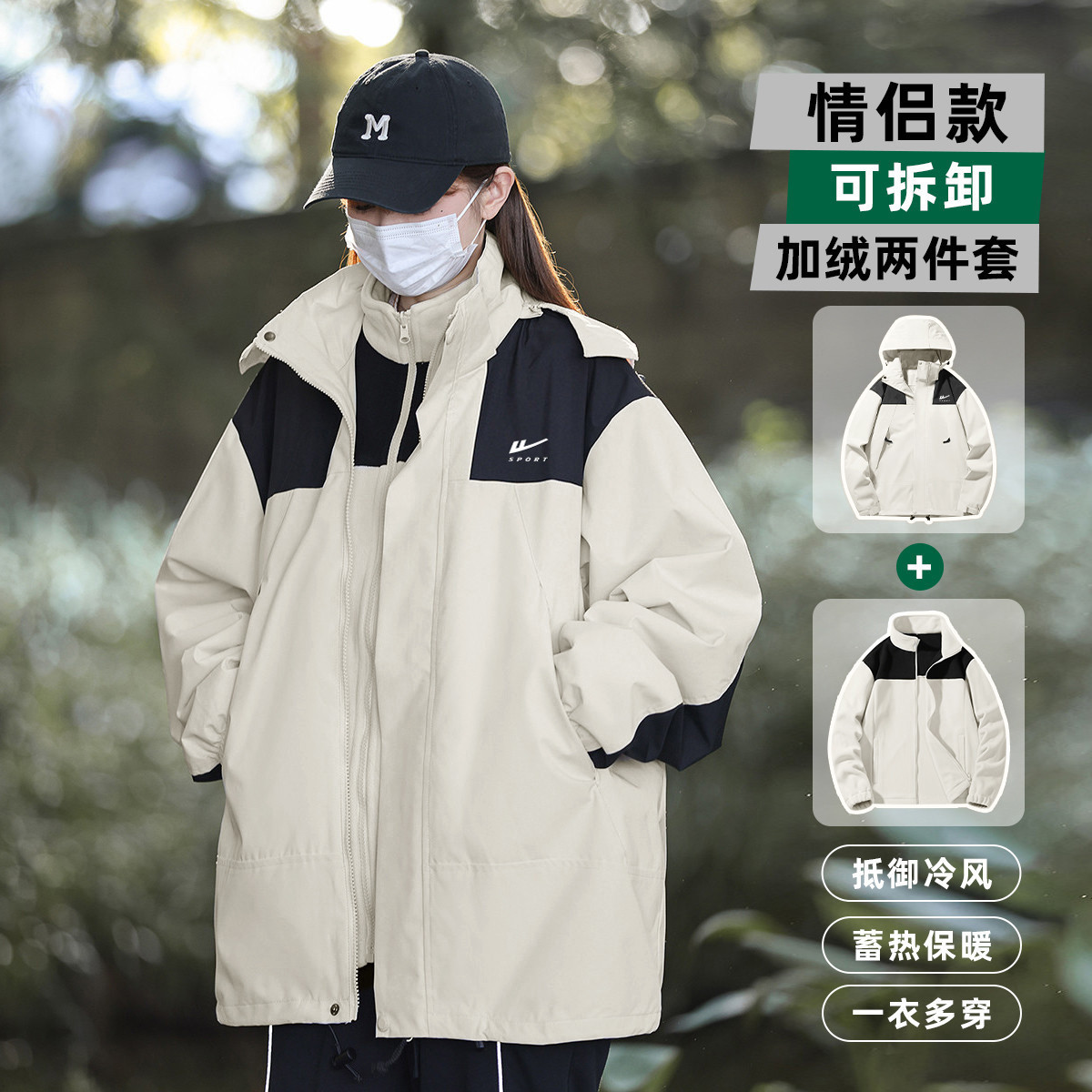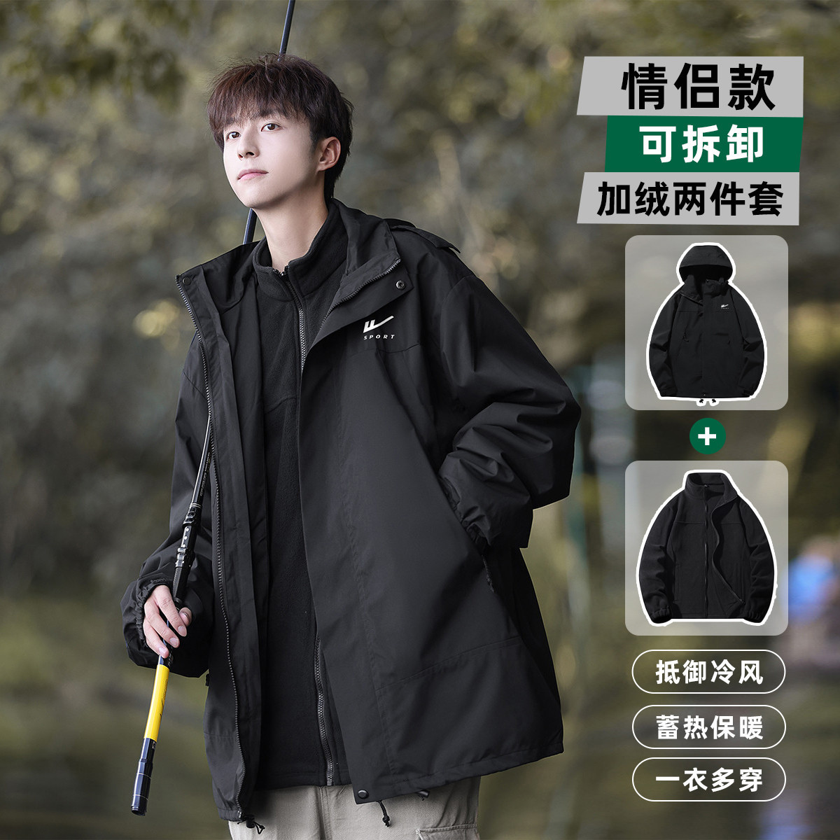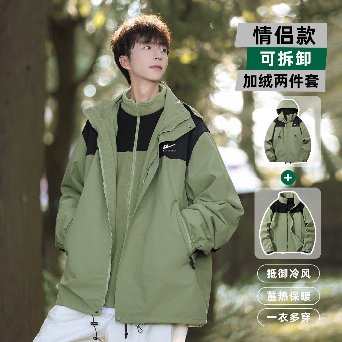 【可拆卸三合一】外套男女户外运动防风情侣夹克加绒登山服 402963