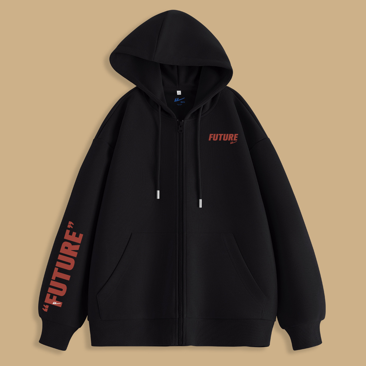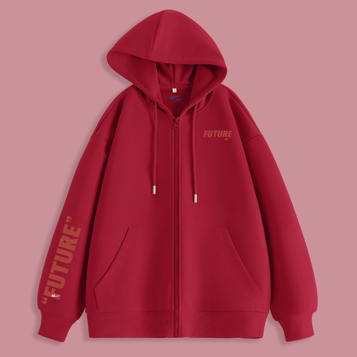 卫衣外套男女款美式复古纯色拉链运动开衫情侣连帽上衣潮百搭外套 038483