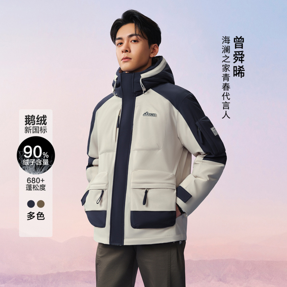【反季】冬季曾舜晞同款防钻绒极光超能鹅绒连帽防风男士羽绒服 398472