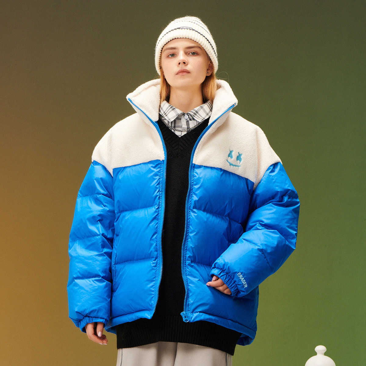 羊羔绒拼接羽绒服男女同款国潮保暖90鸭绒休闲情侣装厚 073175