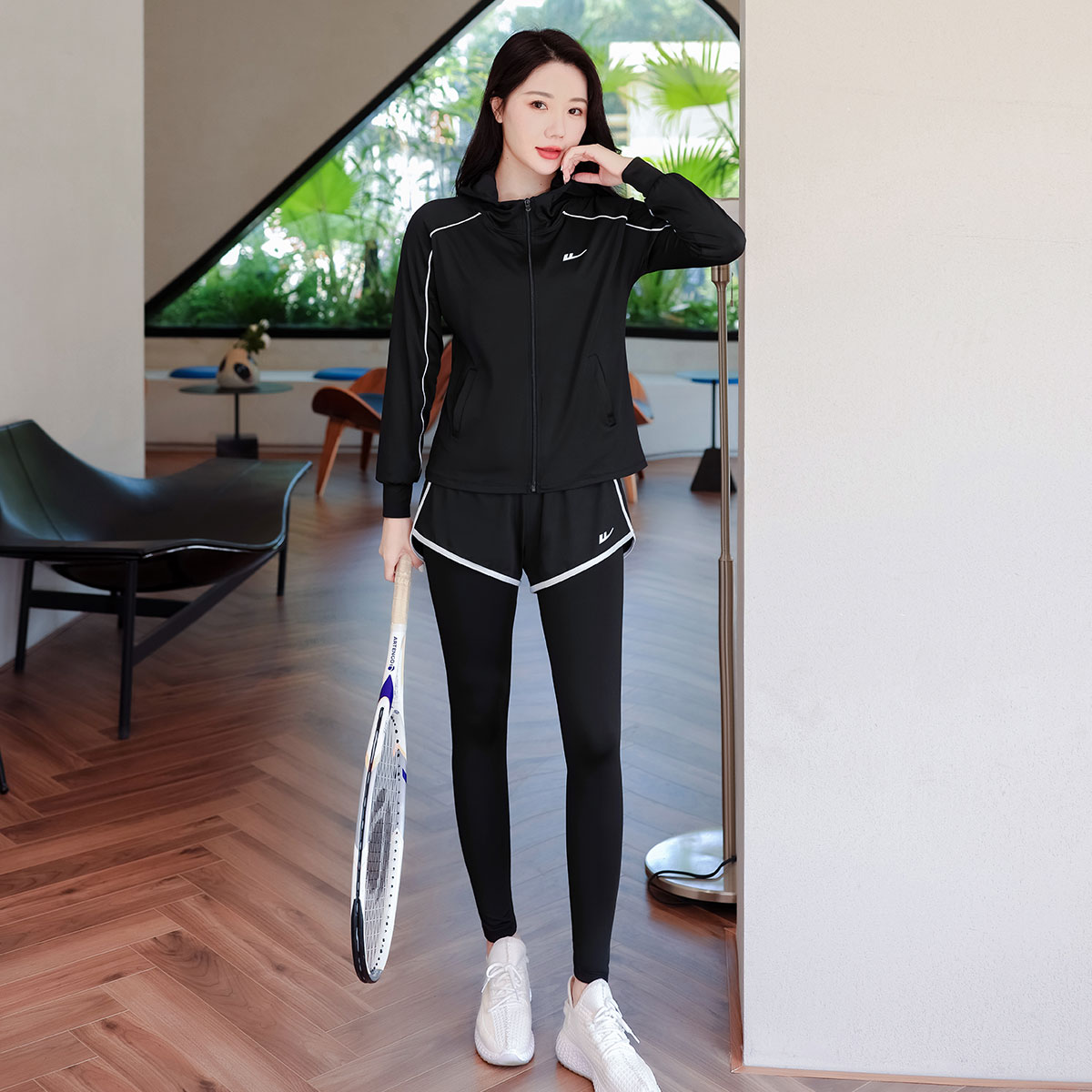 瑜伽服套装女宽松时尚显瘦跑步健身连帽拉链休闲运动套装女士 950355