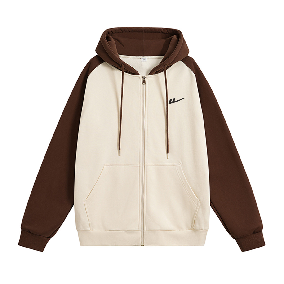 运动外套复古撞色插肩袖基础款开衫连帽卫衣男士国潮简约外套男 939155