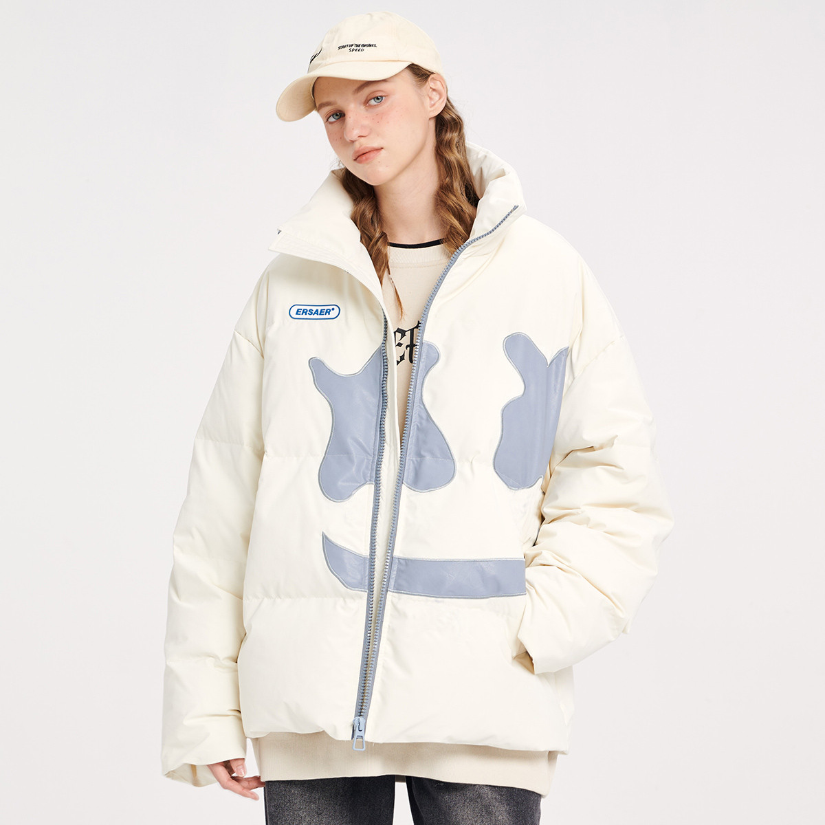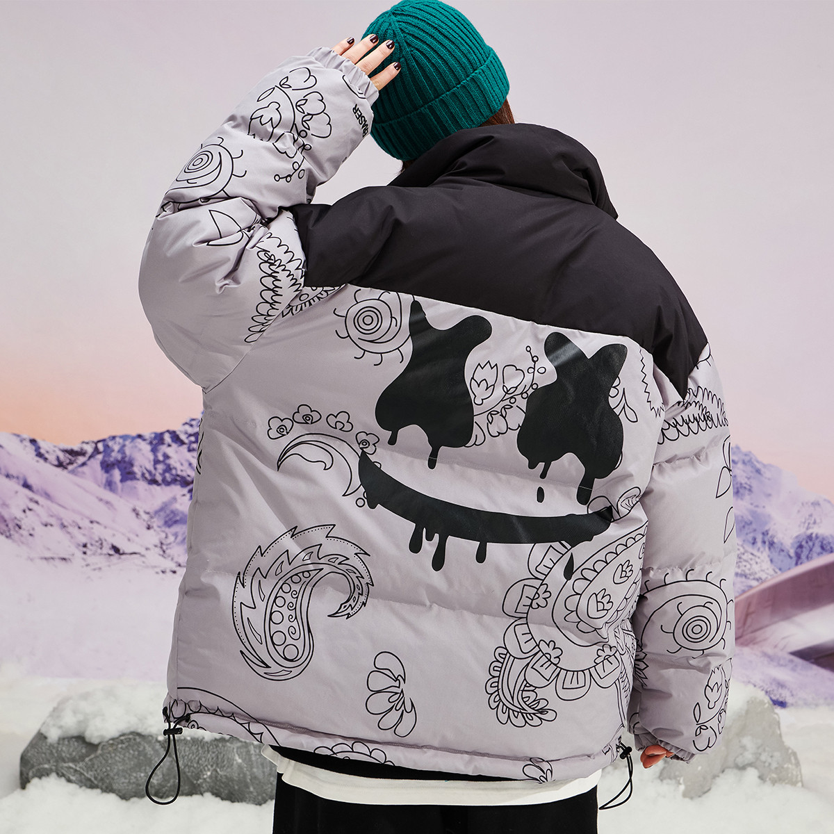大笑脸立领羽绒服男女同款冬季潮牌短款情侣外套保暖鸭绒面包服 762583