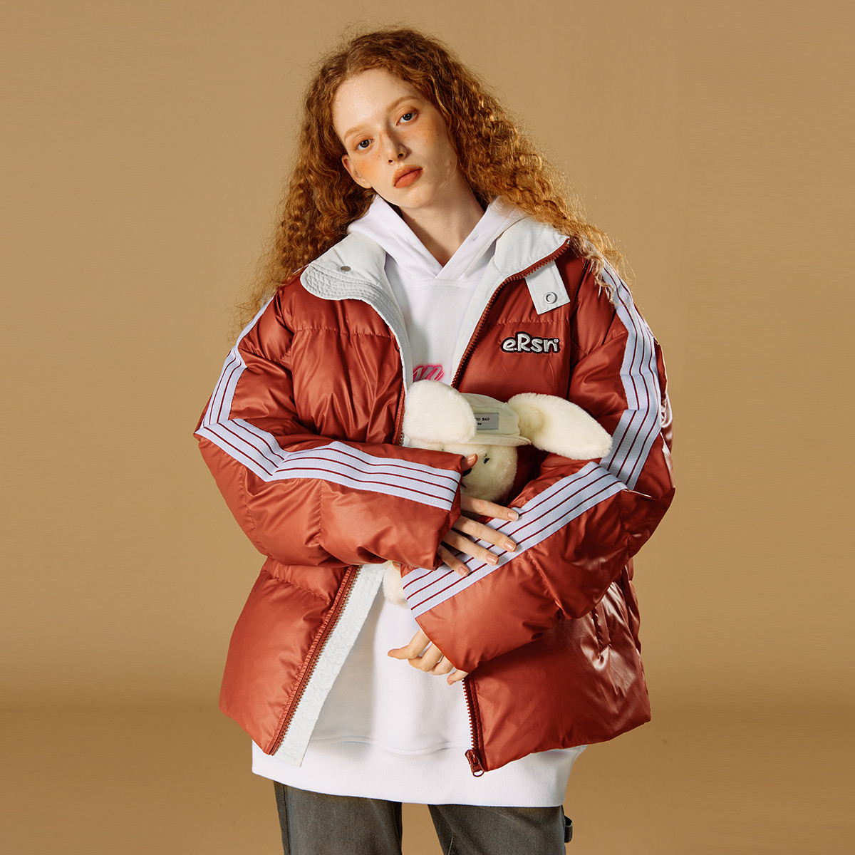 【明星同款】字母条纹羽绒服潮牌美式复古90白鸭绒情侣外套 000023