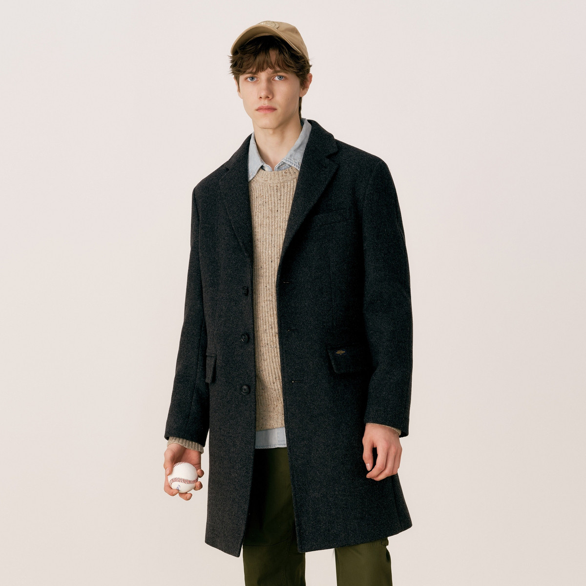 【绵羊毛】毛呢大衣男春秋款简约通勤中长款翻领大衣外套男 465729