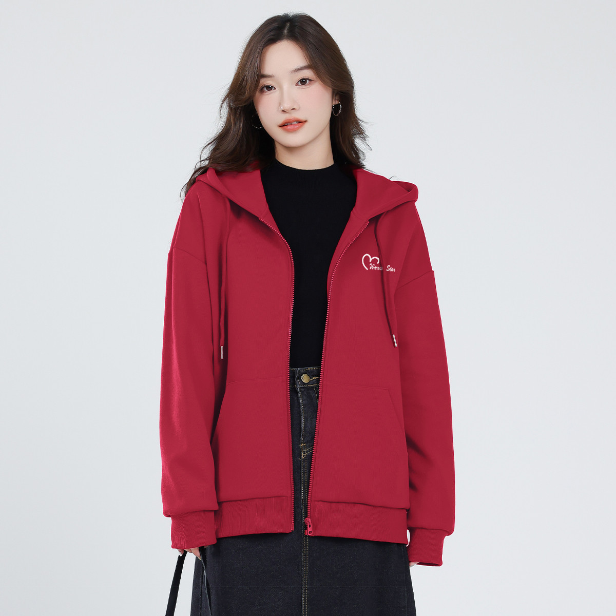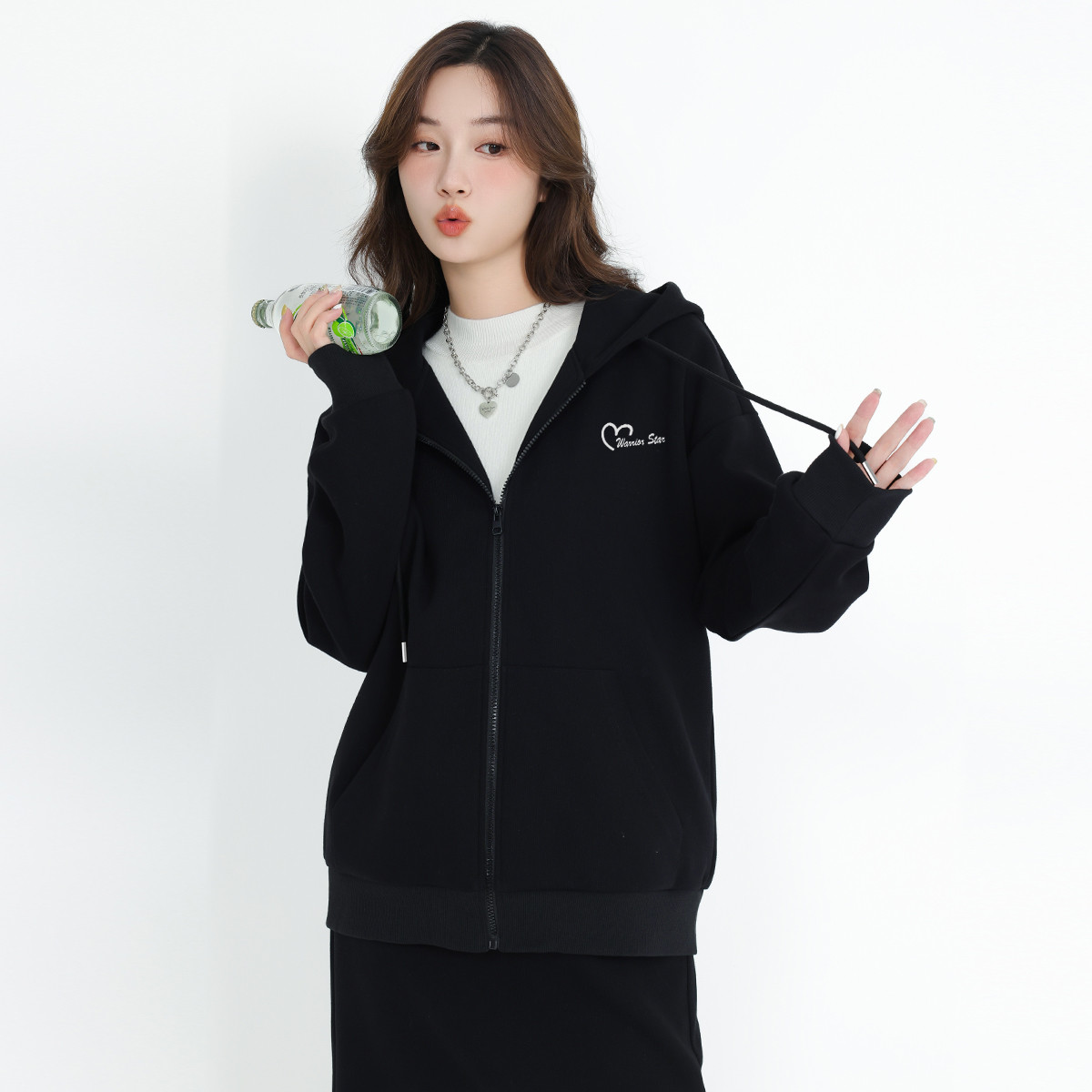 【女装】春秋女式运动风重磅卫衣外套连帽宽松开衫上衣 855699