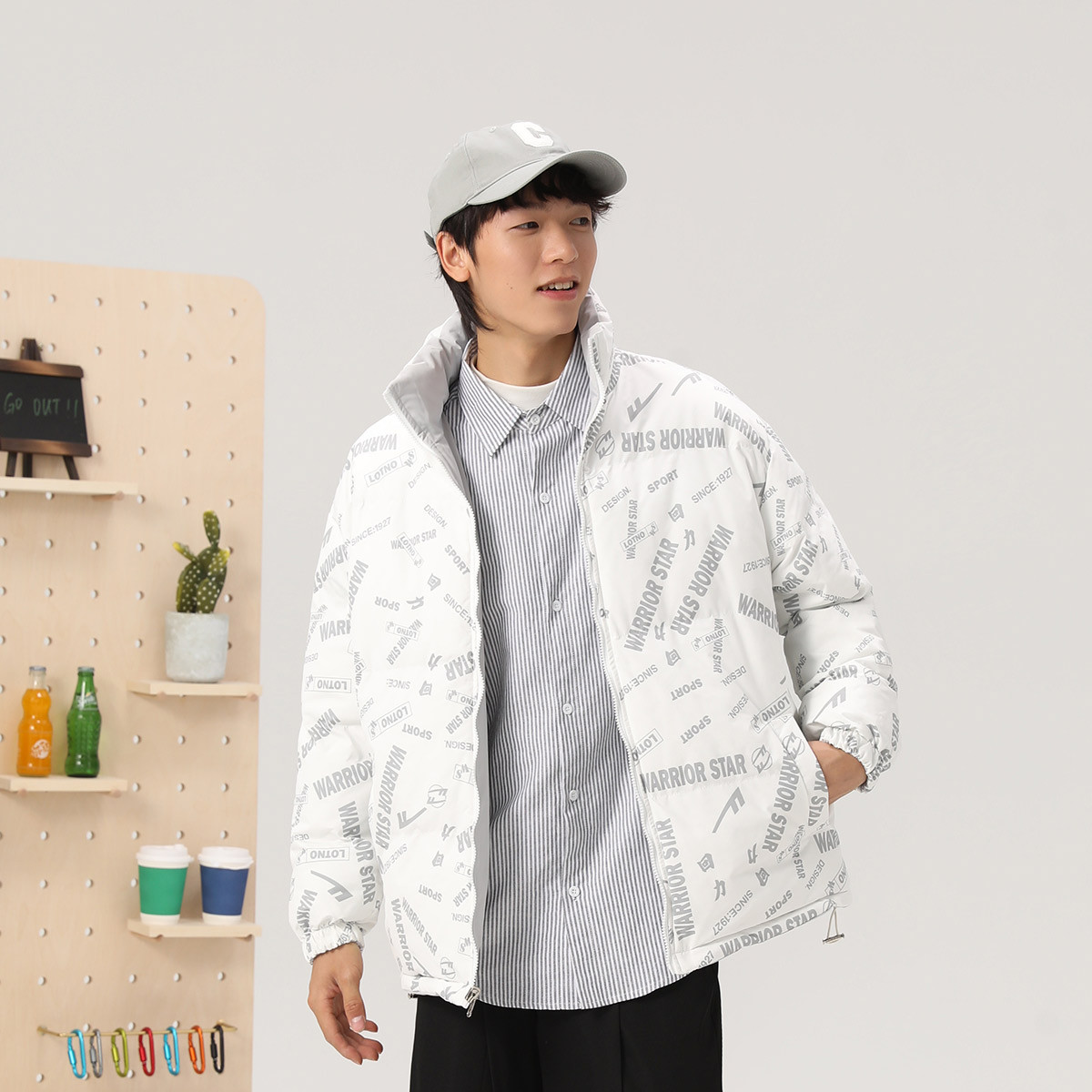 【两面穿棉服】潮牌印花保暖棉衣秋冬款时尚立领棉外套男式棉服 453459