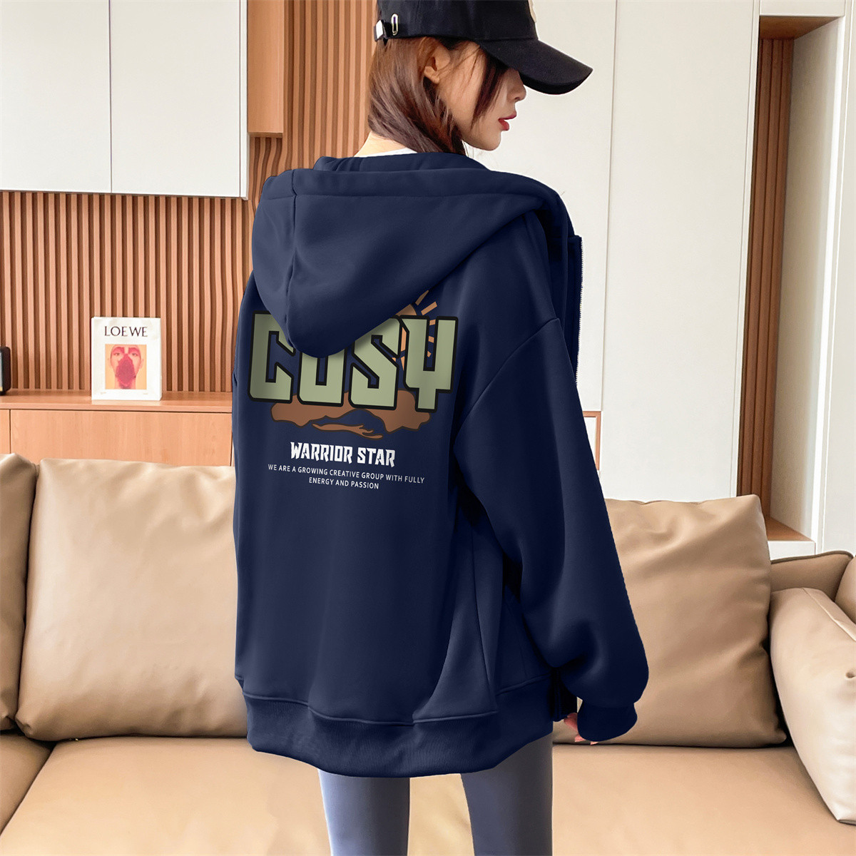 【女装】春秋女式运动风重磅卫衣外套连帽宽松开衫上衣 275987