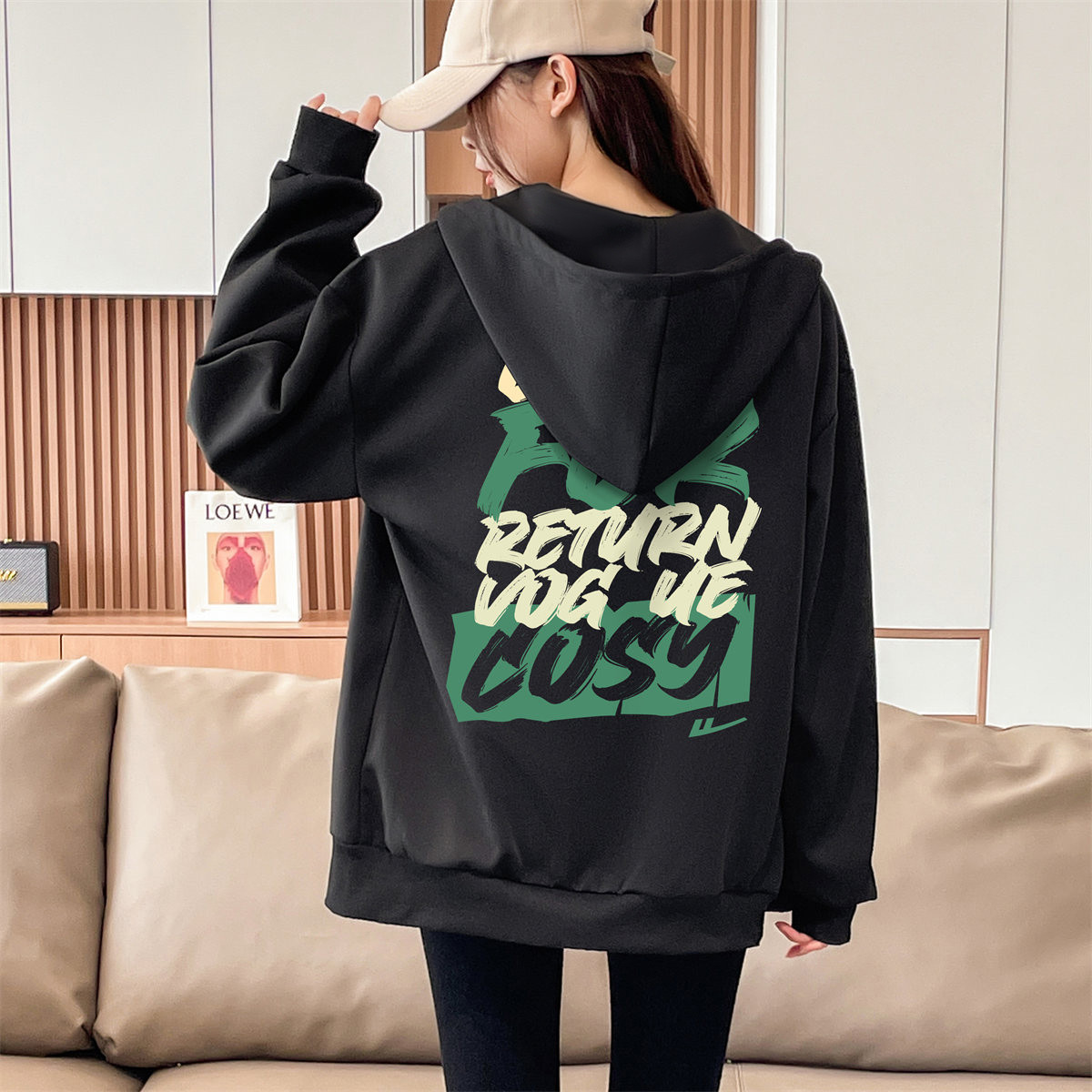 潮流印花卫衣女士春秋款开衫外套宽松设计感小众拉链上衣 234195