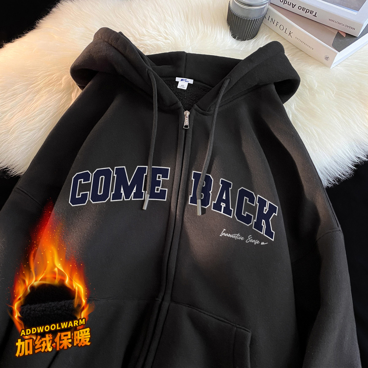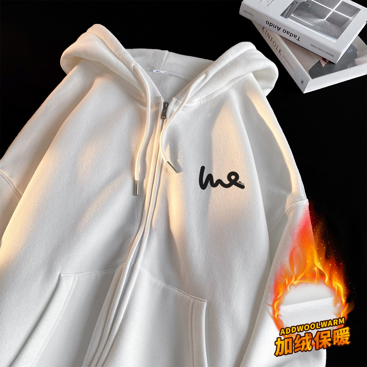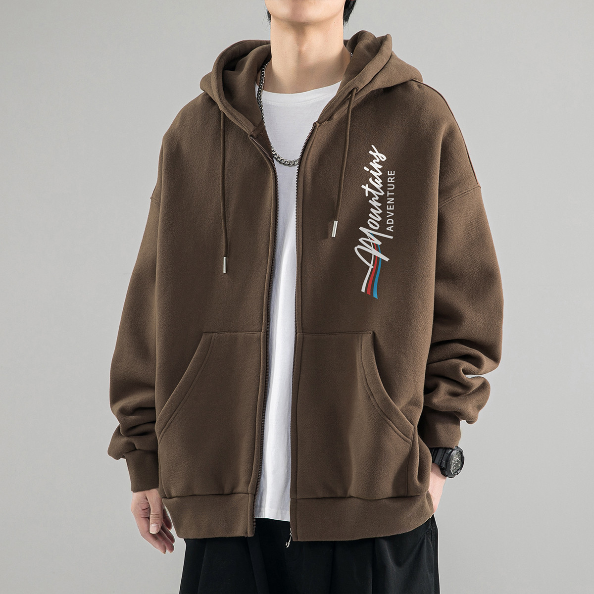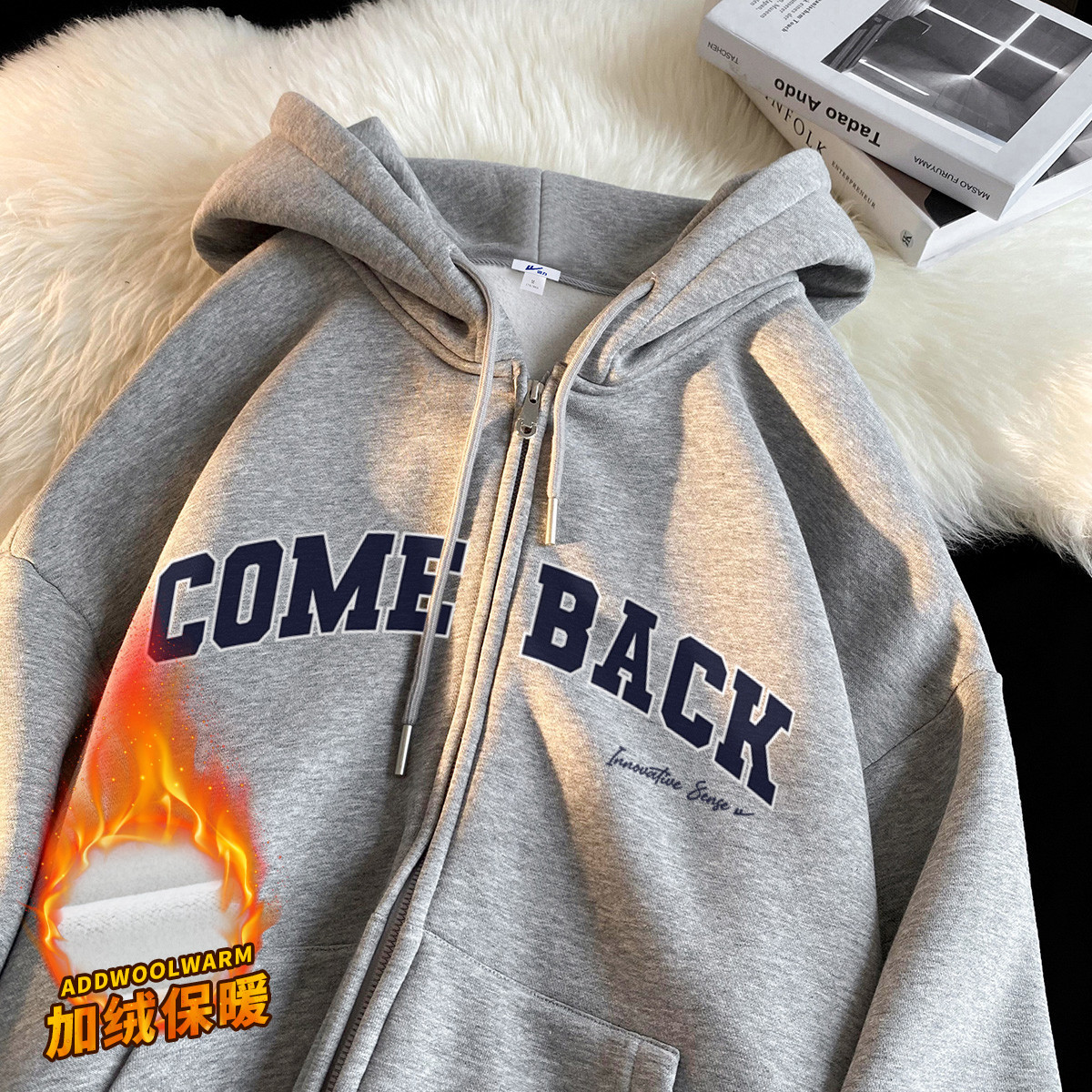 【加绒可选】拉链卫衣外套男女款美式宽松运动休闲情侣连帽开衫 036307