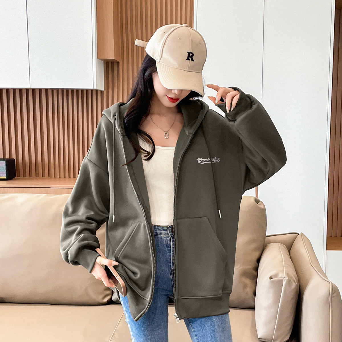 【加绒可选】拉链卫衣外套男女款美式宽松运动休闲情侣连帽开衫 914003
