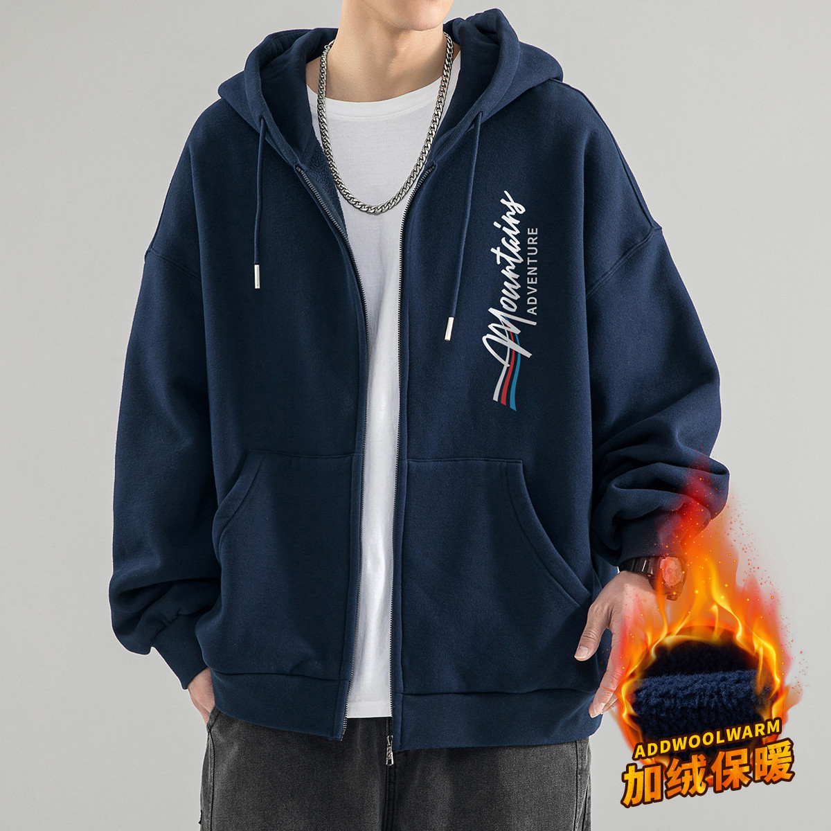 美式连帽卫衣外套男加绒可选青少年运动开衫休闲百搭拉链夹克 479571