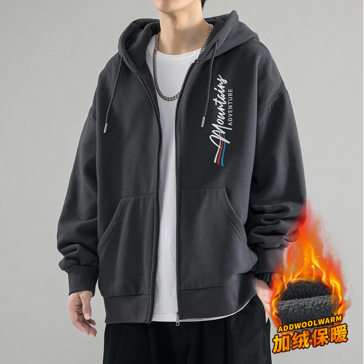 【加绒可选】卫衣外套男春秋连帽开衫运动连帽开衫户外外套 266579