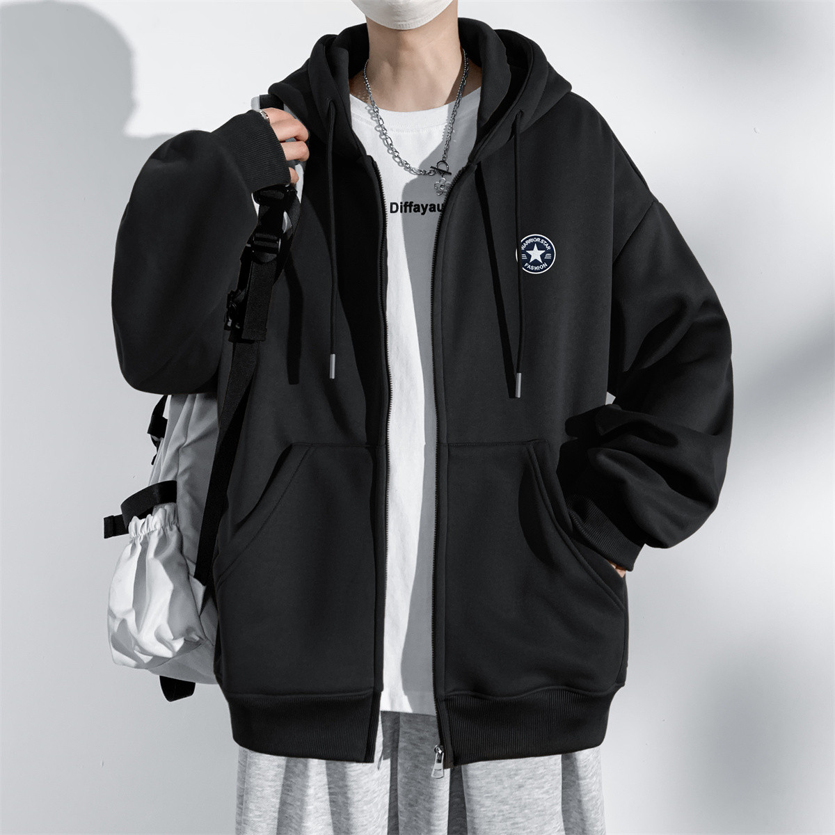 男士外套秋冬季个性休闲宽松外套舒适运动服百搭拉链上衣开衫卫衣 418259