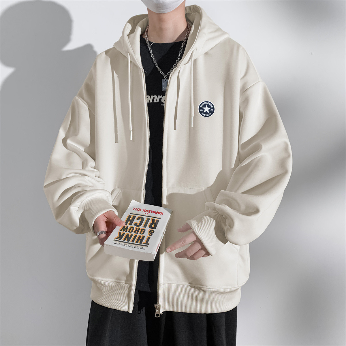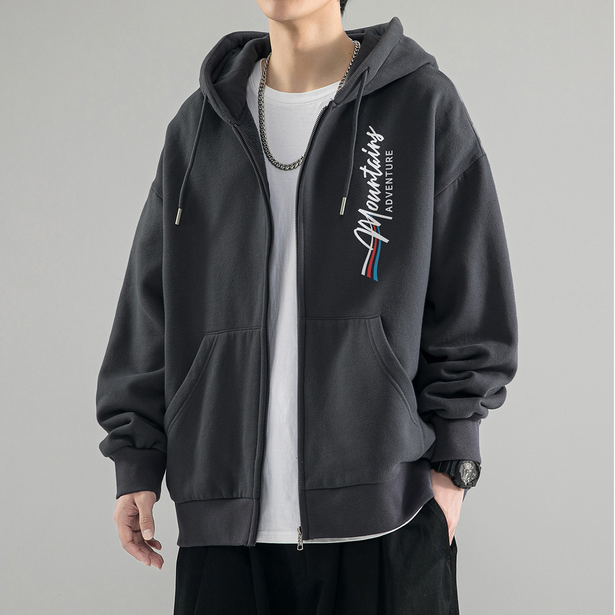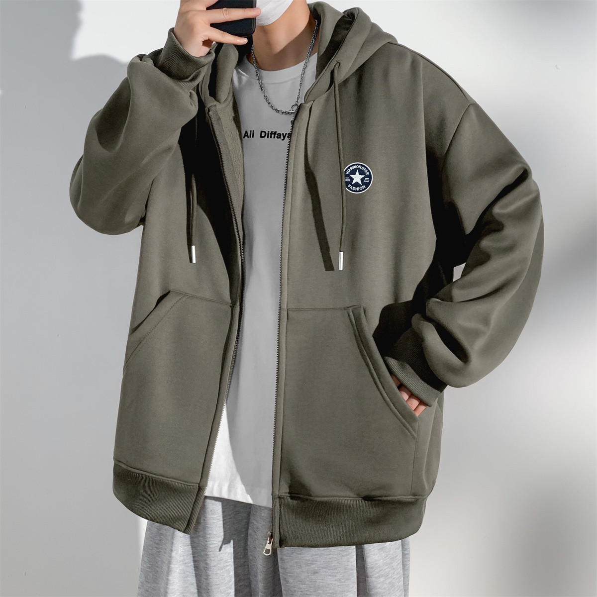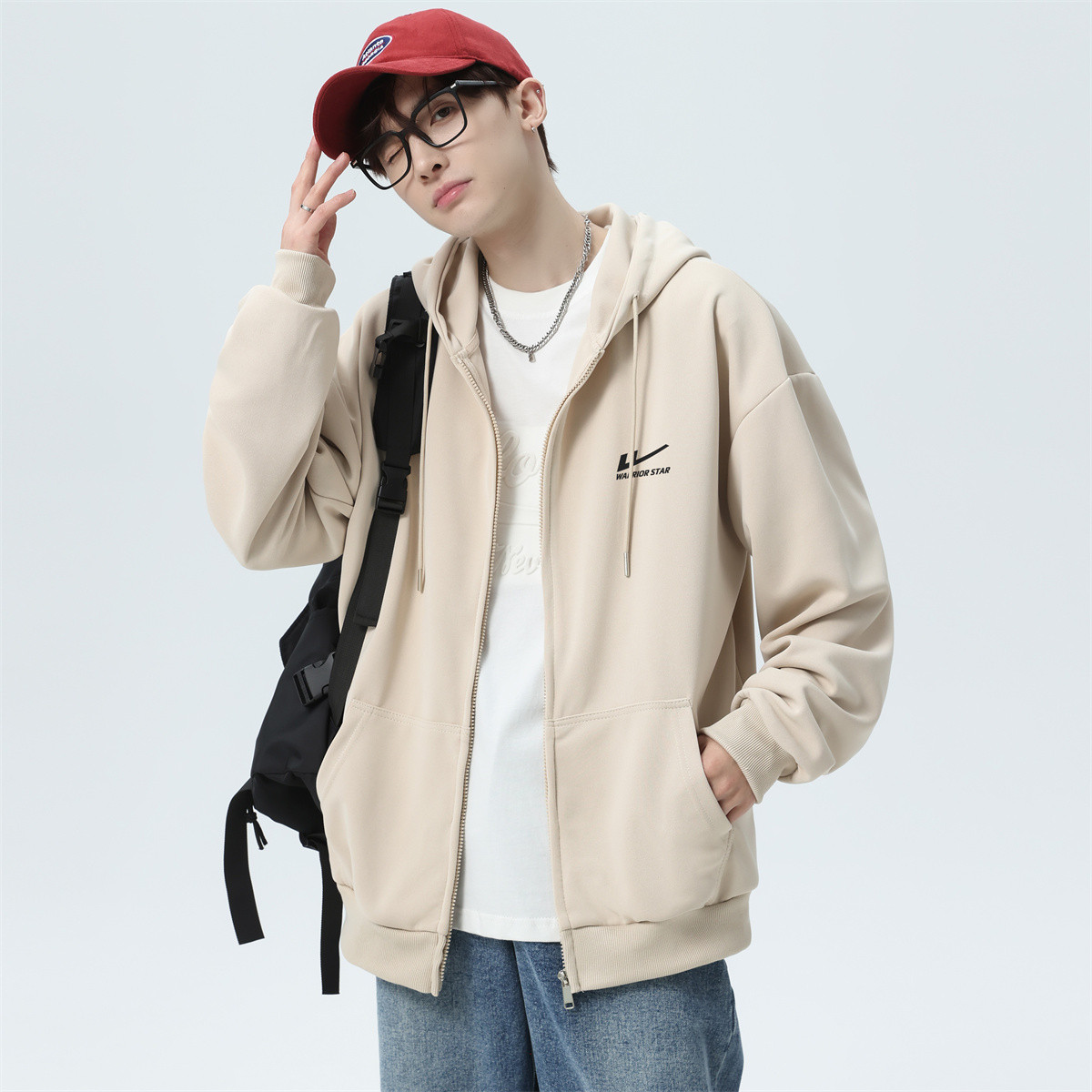 开衫连帽卫衣男士春秋季潮流宽松青少年高街休闲拉链运动外套 065107
