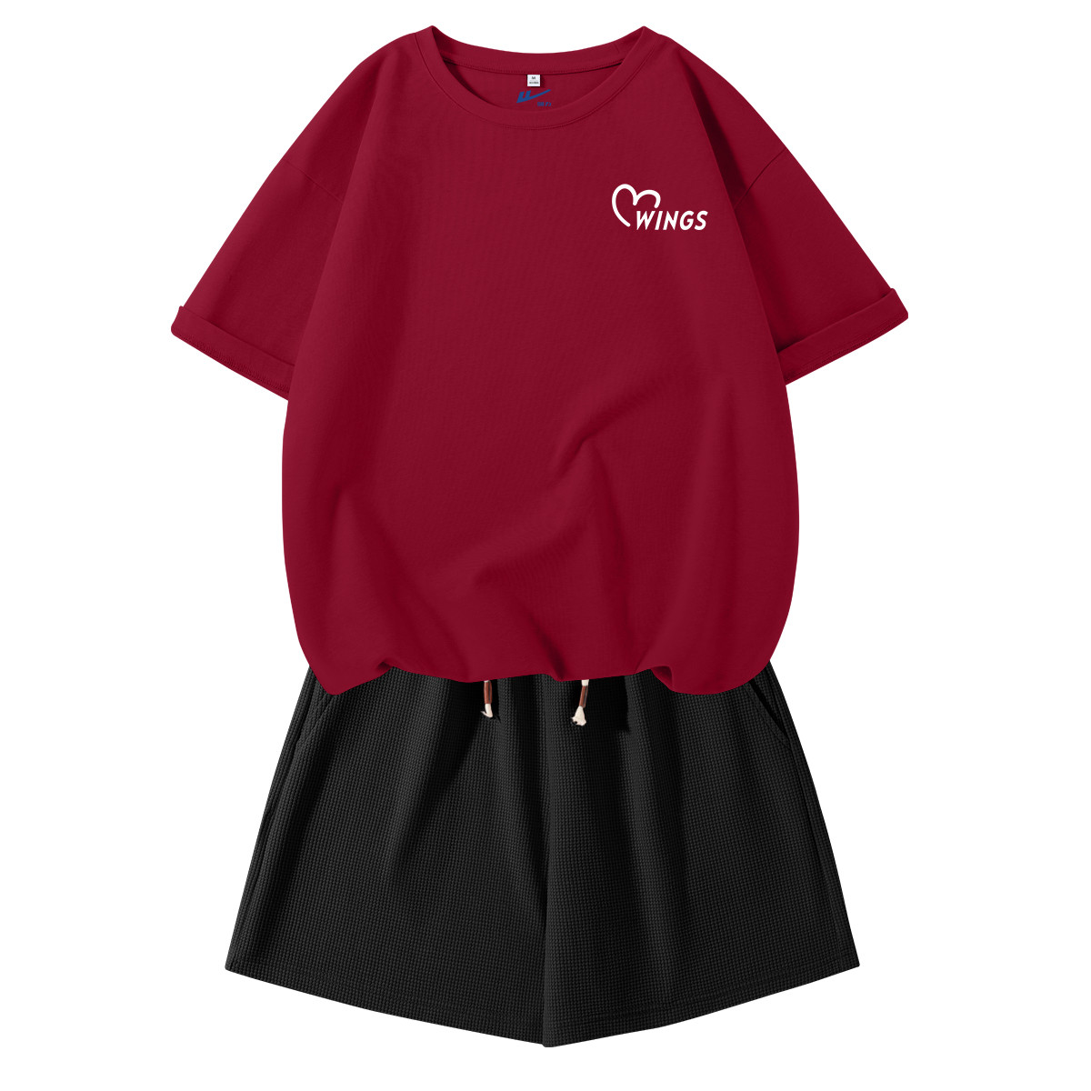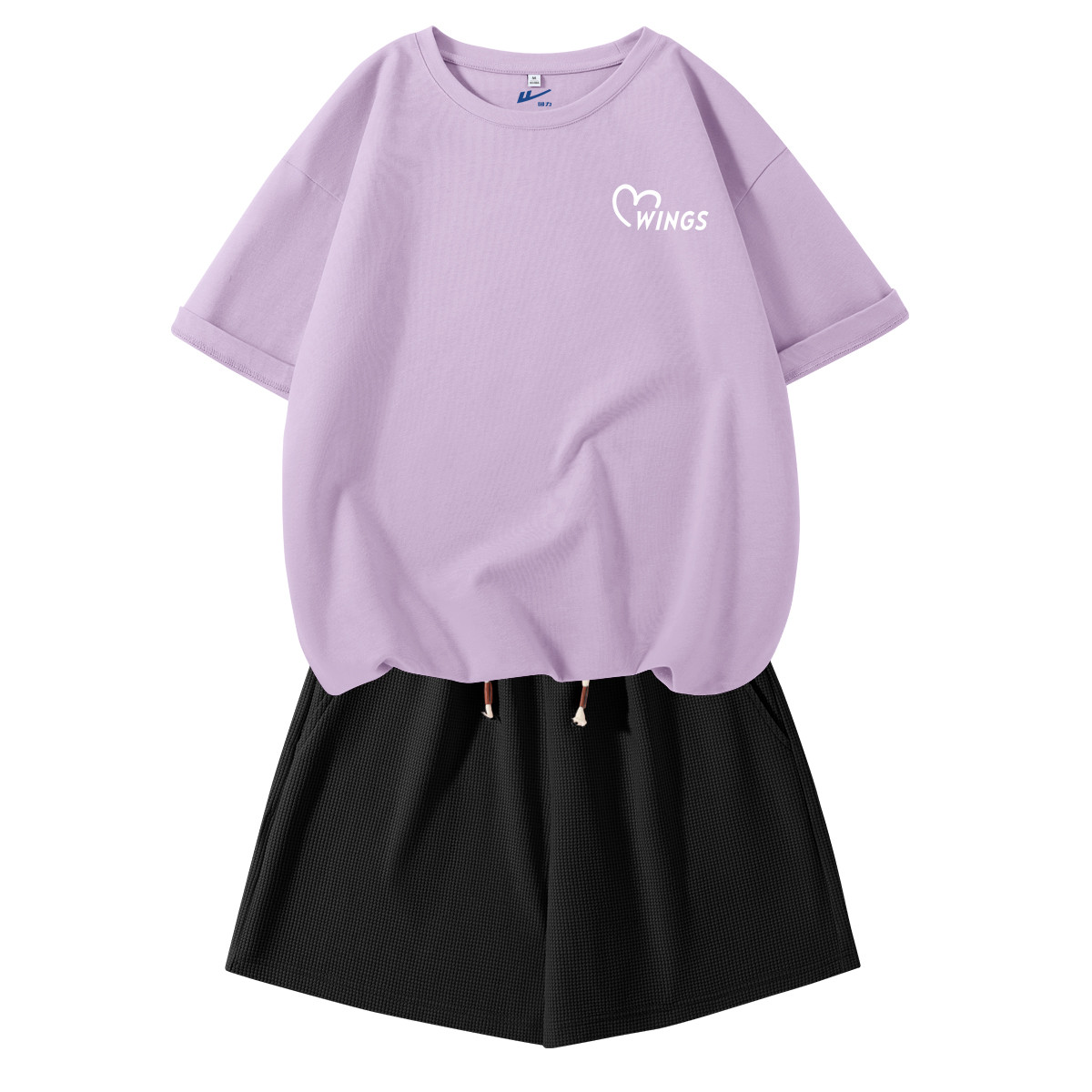 【女装】夏季女式运动套装华夫格三分短裤+宽松T两件套 839315