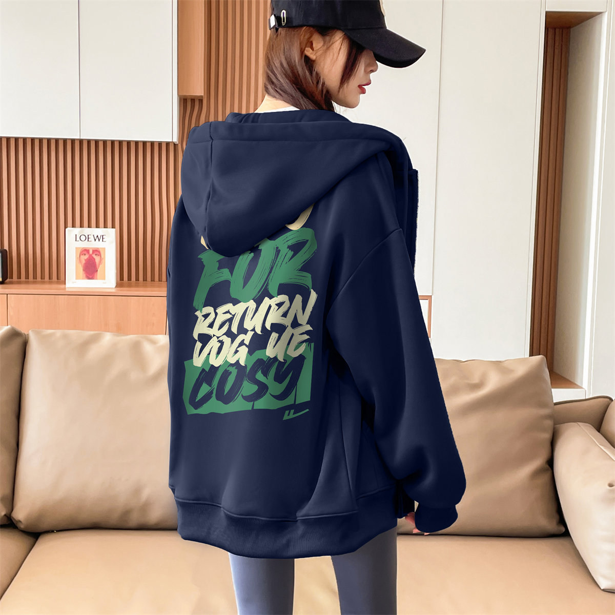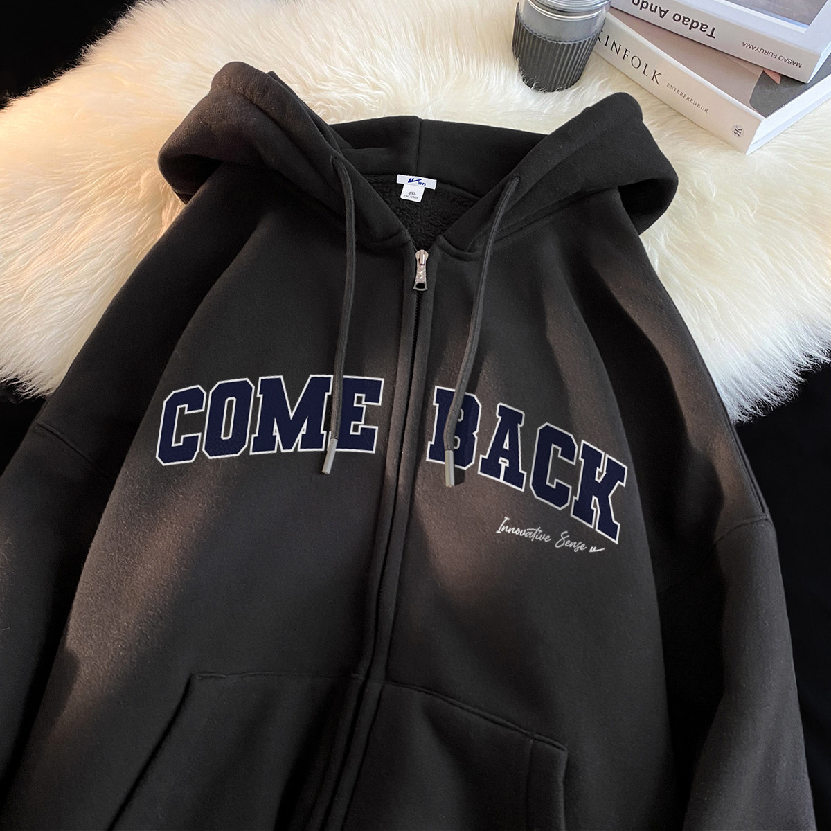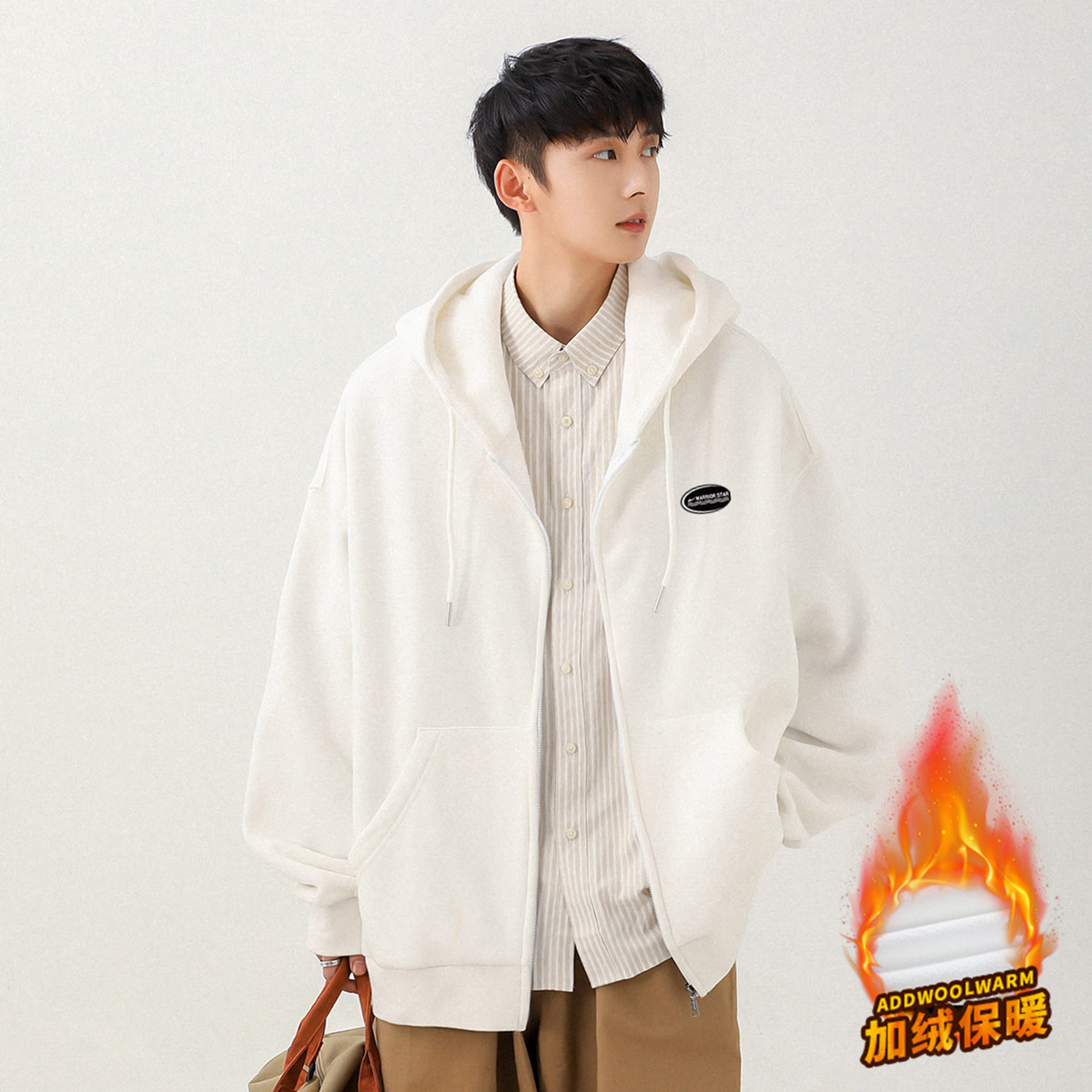 【加绒可选】拉链卫衣外套男女款美式宽松运动休闲情侣连帽开衫 093651