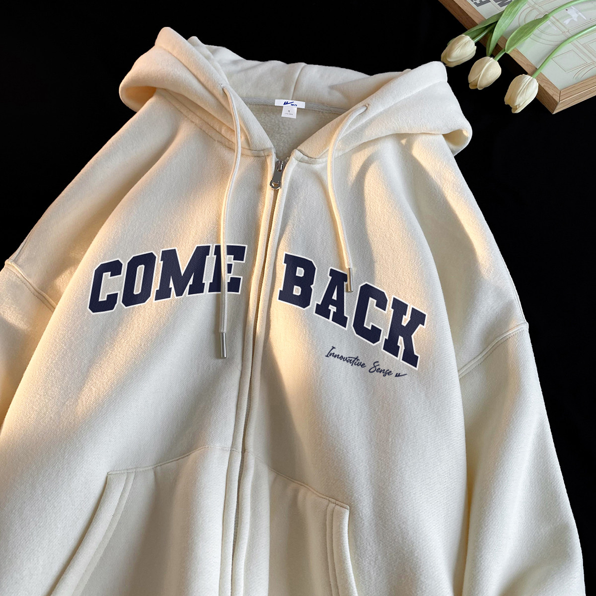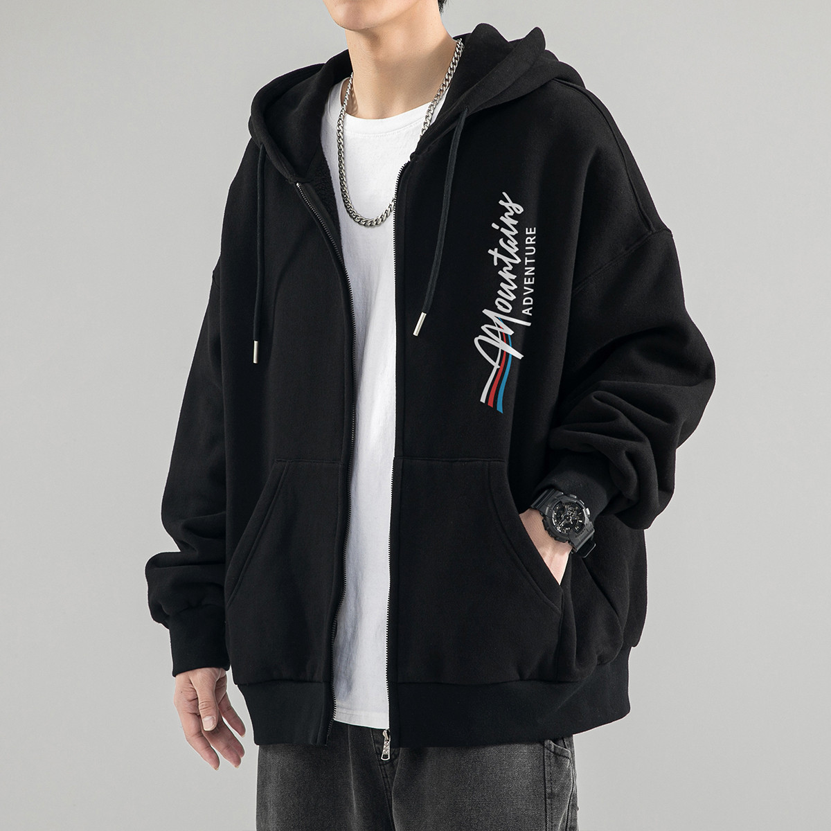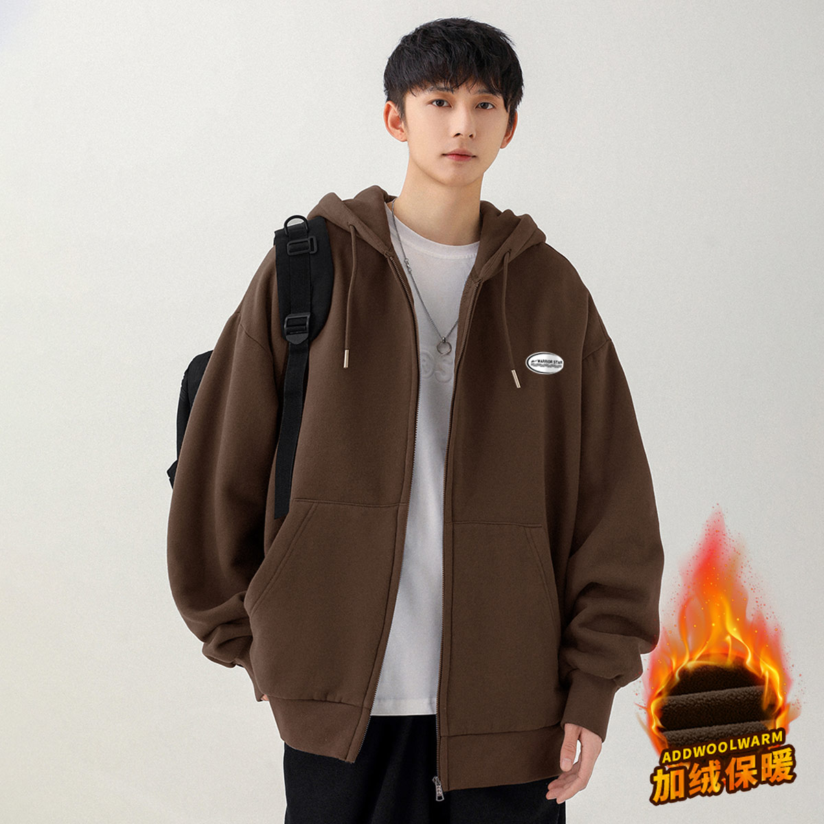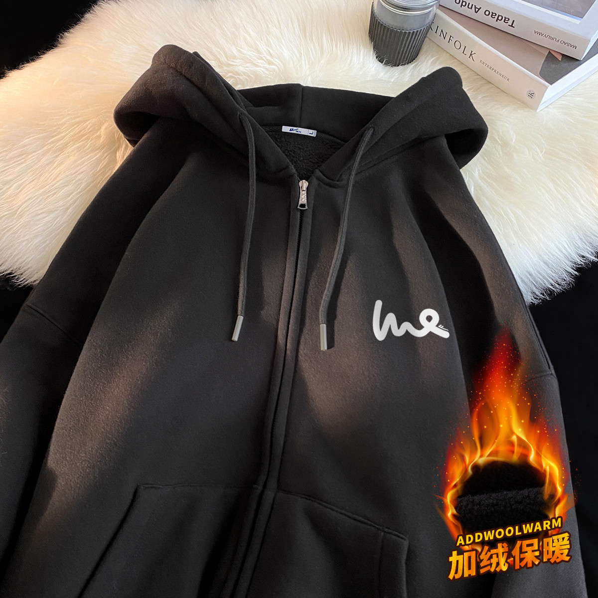 【加绒可选】拉链卫衣外套男女款美式宽松运动休闲情侣连帽开衫 028115