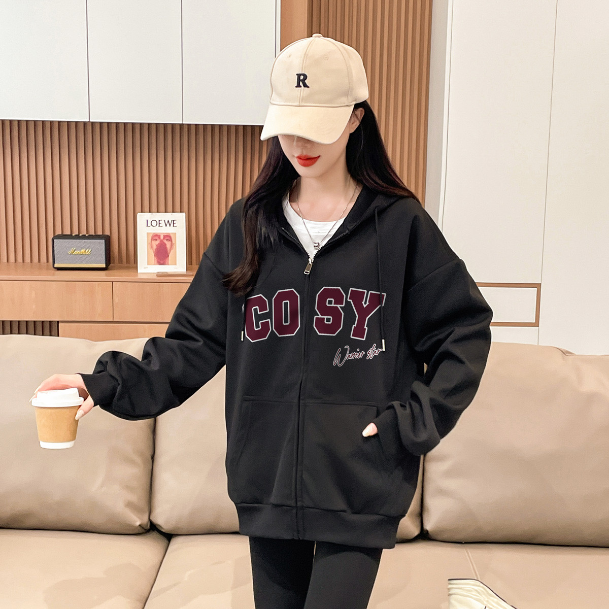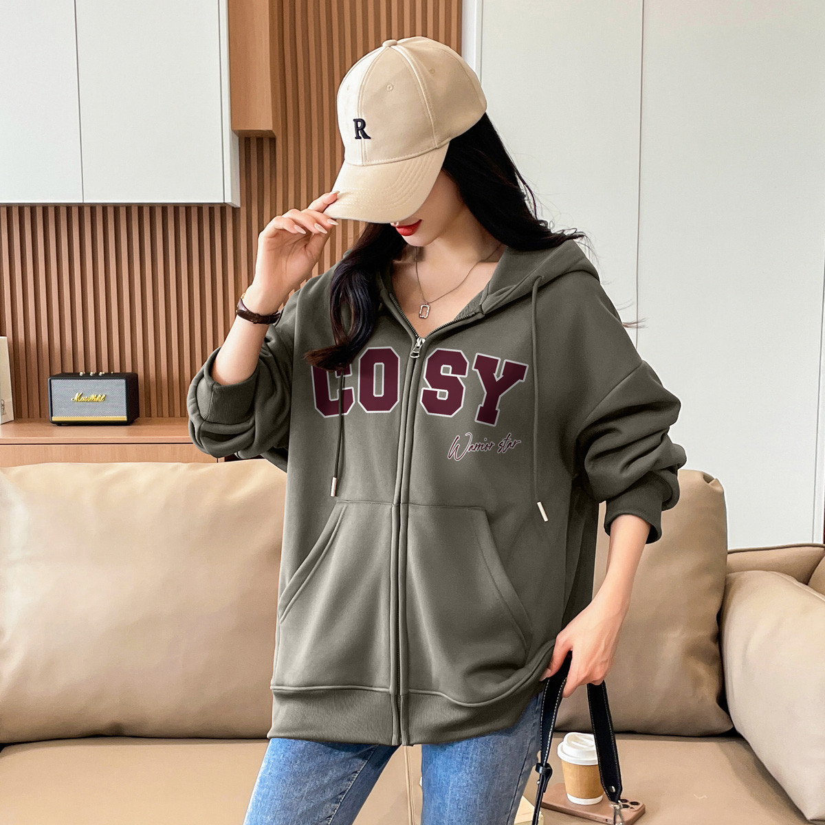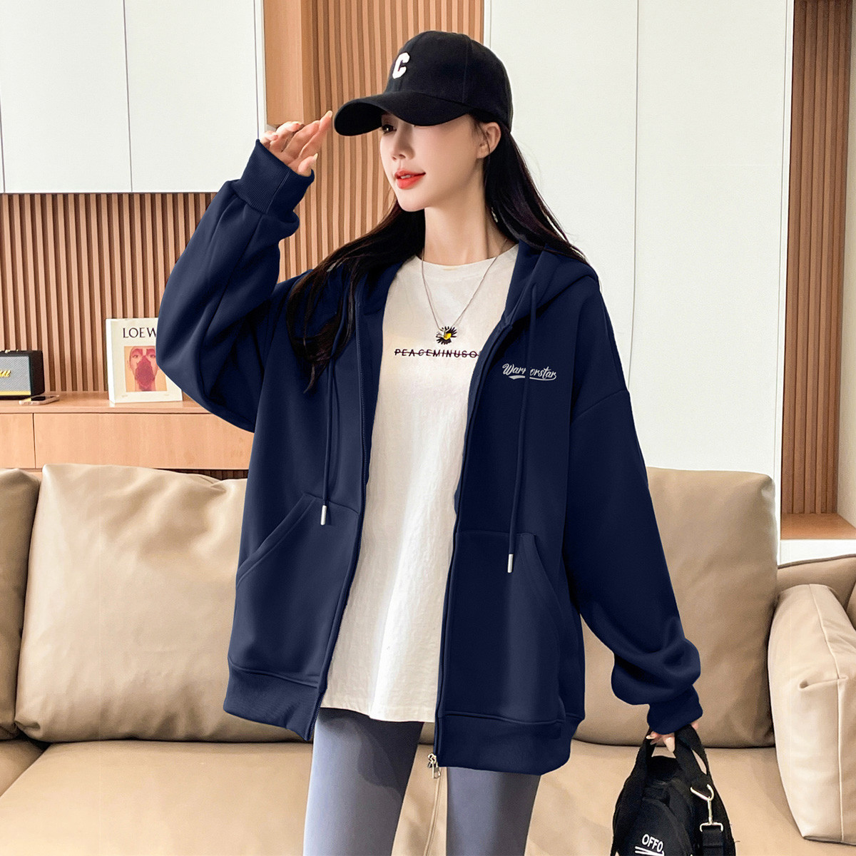 春秋季女装百搭休闲运动卫衣外套休闲百搭拉链连帽开衫宽松开衫女 468819