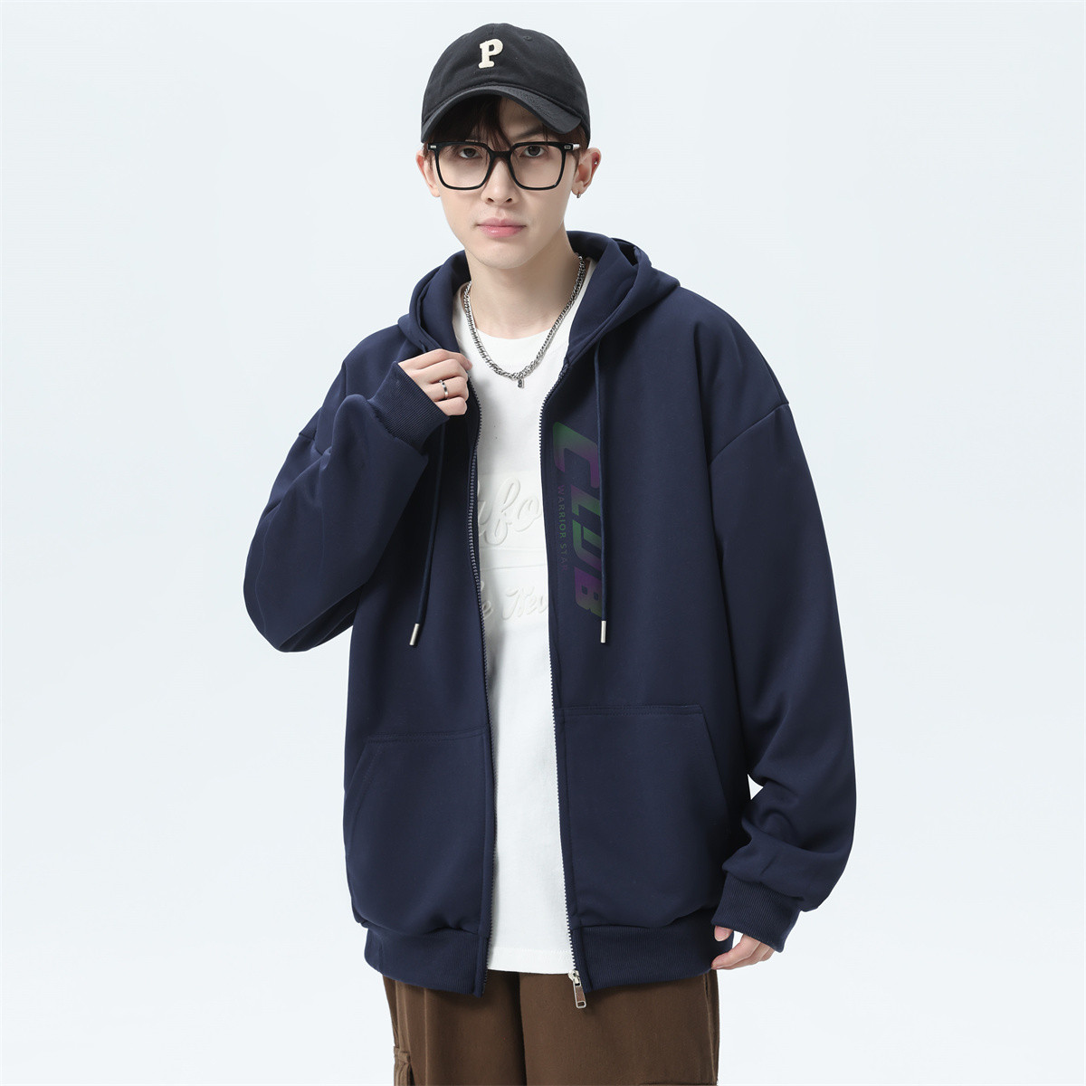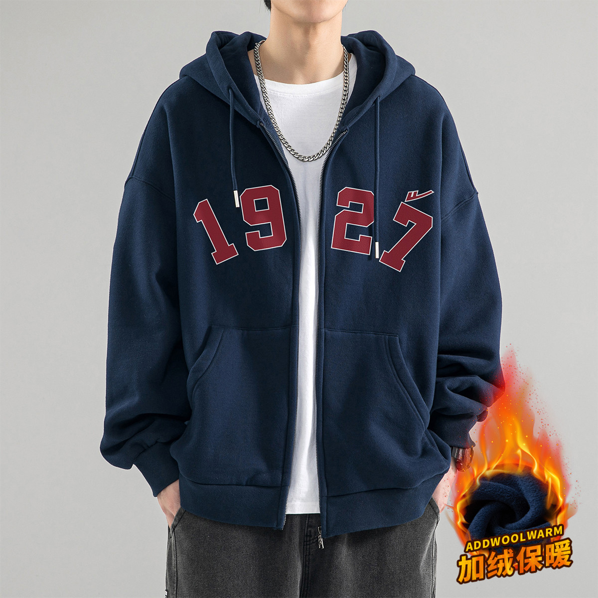美式连帽卫衣外套男加绒可选青少年运动开衫休闲百搭拉链夹克 500051