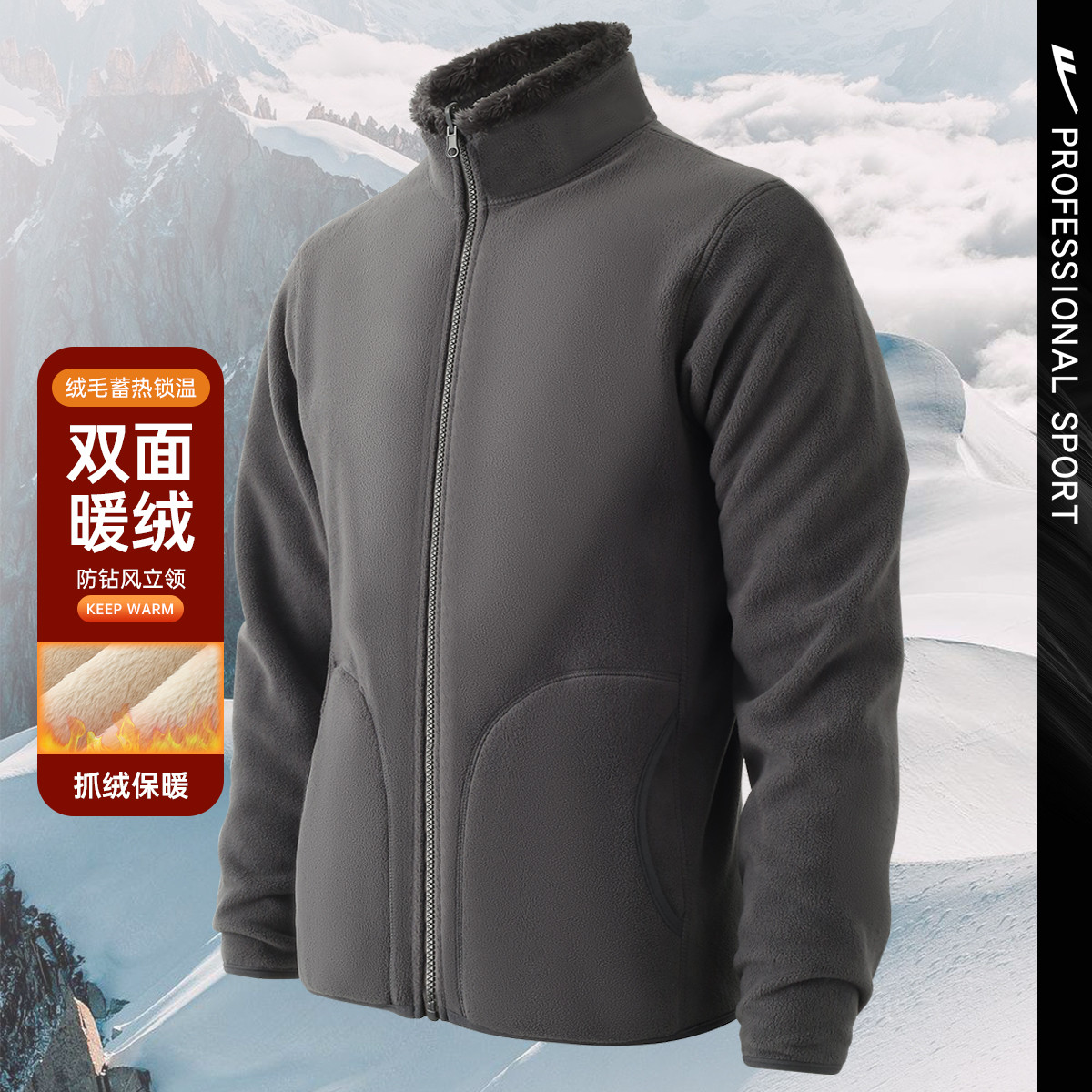 【加绒加厚】冬款运动外套保暖抓绒运动服棉衣双面可穿立领上衣服 531027