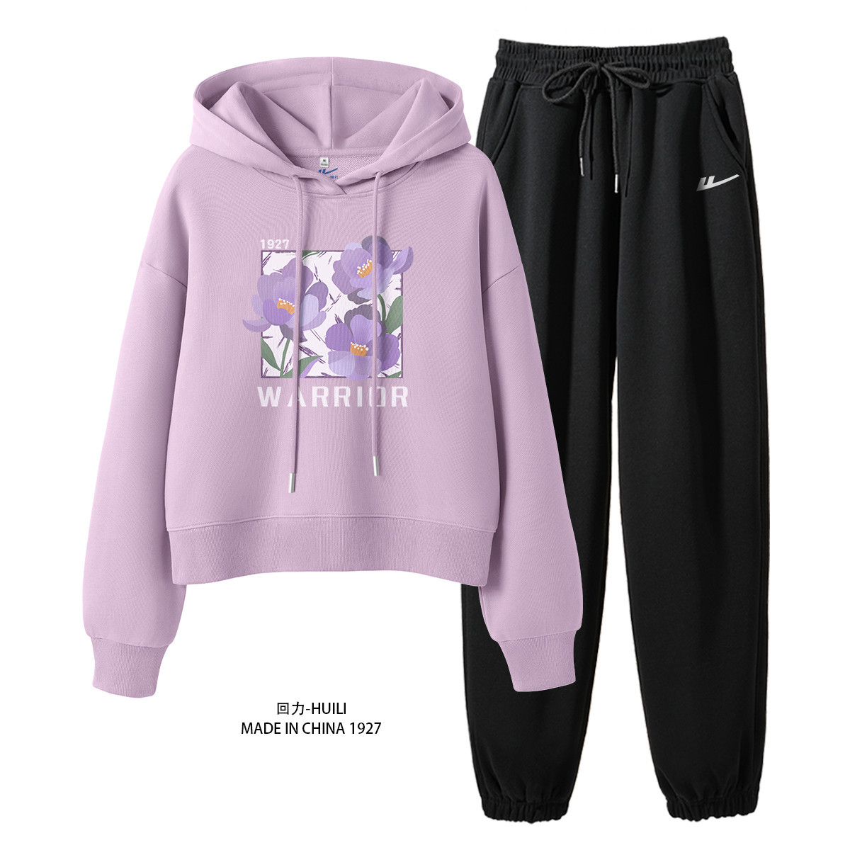 【女装】春秋运动套装女橡筋休闲裤+短款连帽卫衣运动服 872275
