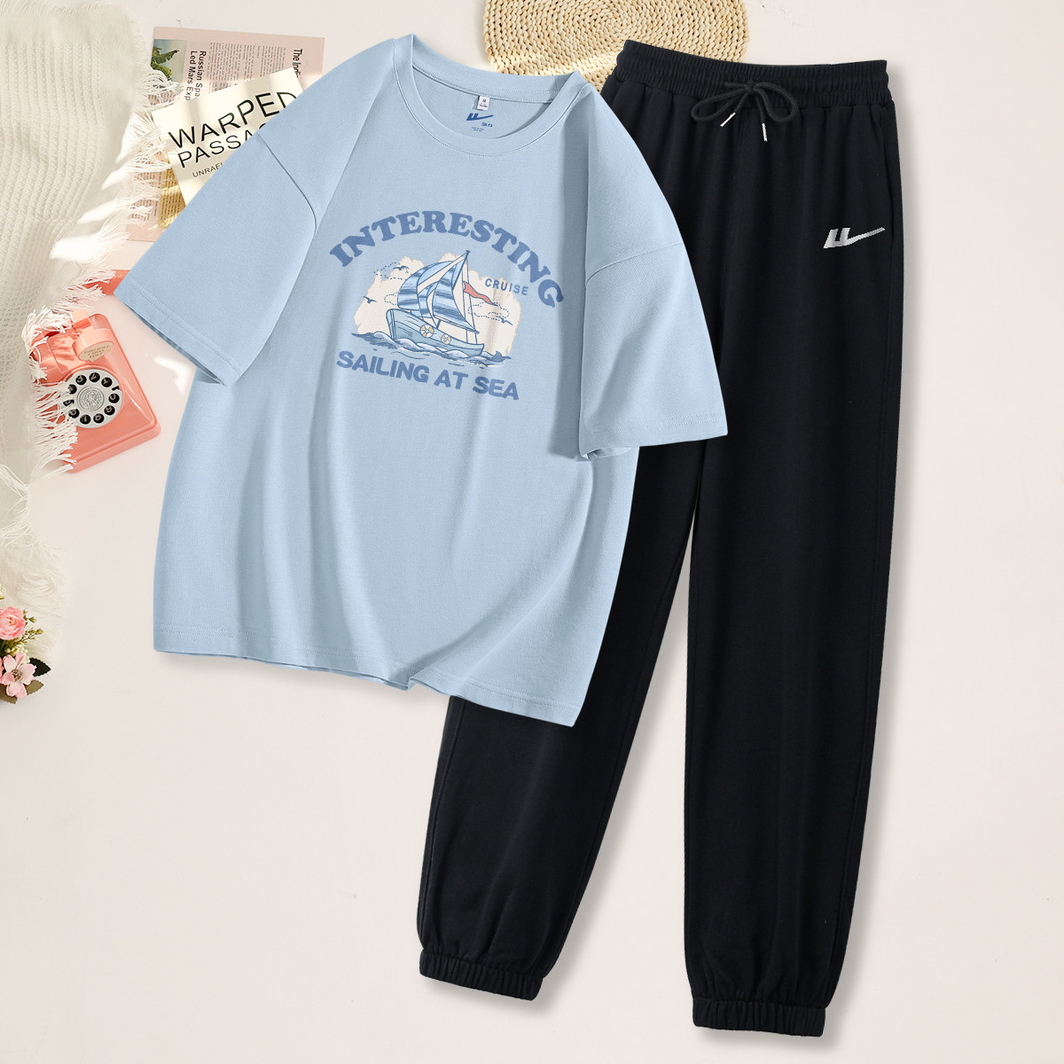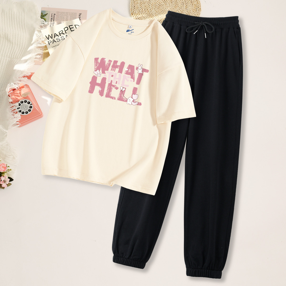 【女装】夏季女式运动套装休闲橡筋收脚裤+纯棉宽松T 965139