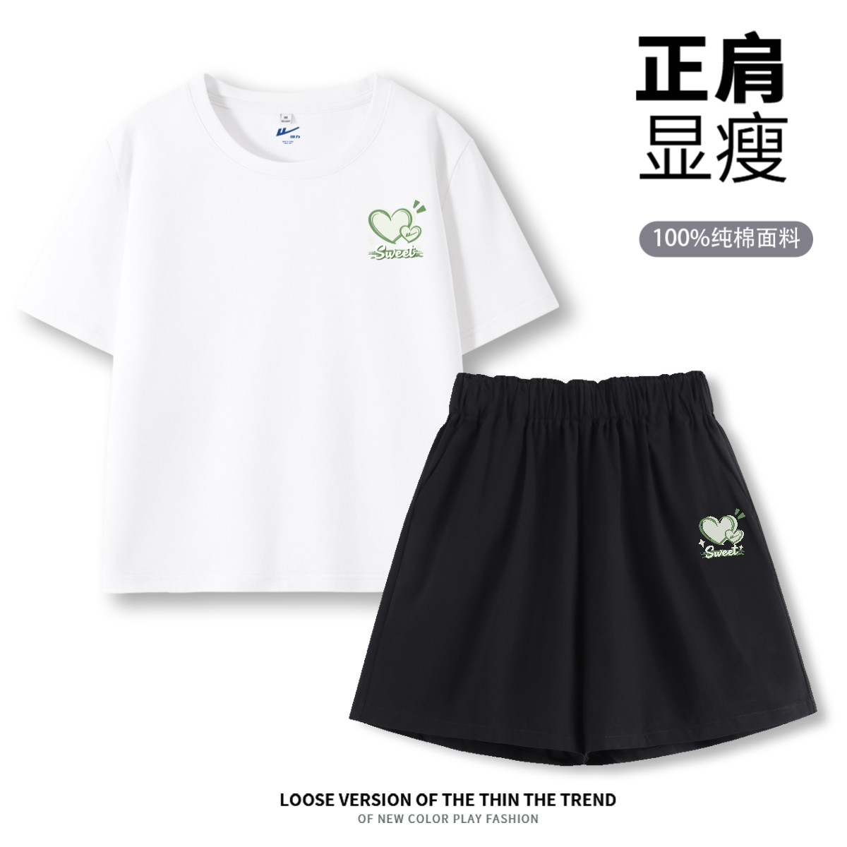 【女装】夏季休闲运动套装女短款T恤+三分短裤纯棉小个子两件套 377555