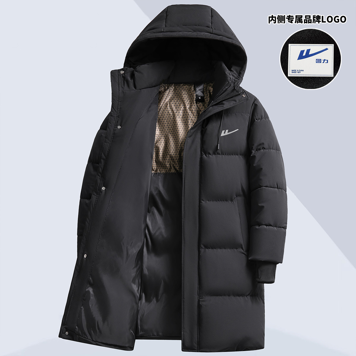 回力棉服男士户外冬季潮牌中长款连帽棉袄加绒加厚保暖棉服外套 542419