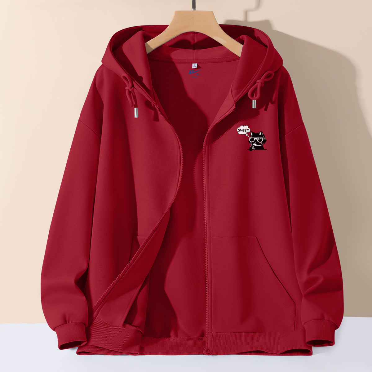 卫衣外套男女款美式复古纯色拉链运动开衫情侣连帽上衣潮百搭外套 038483