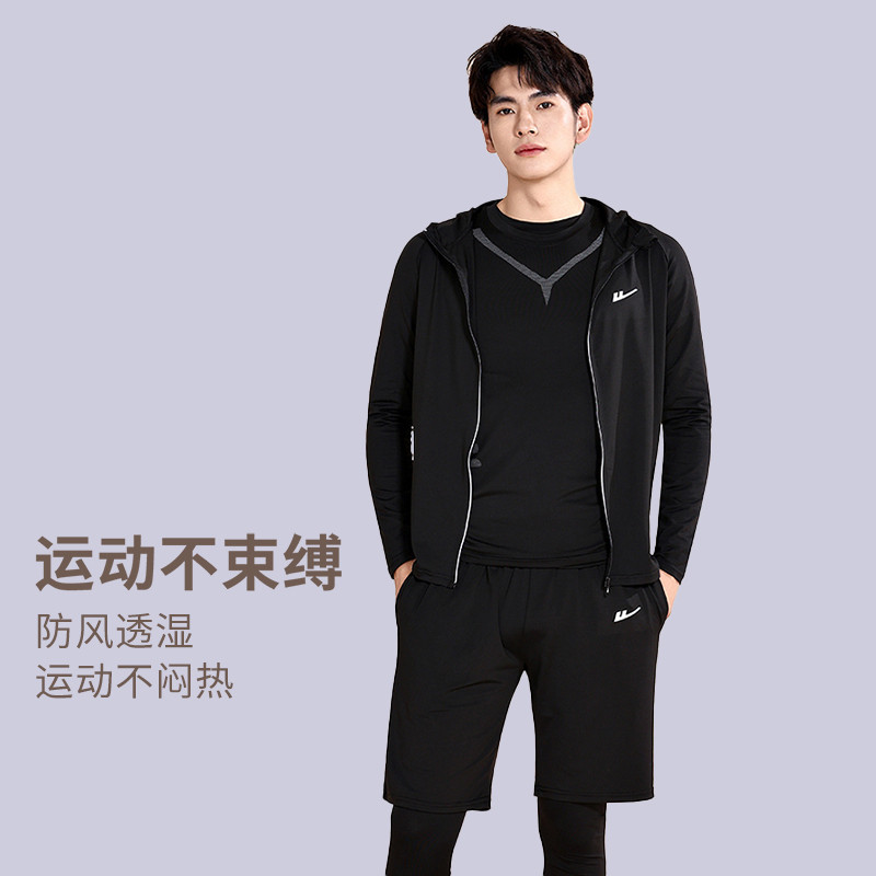 跑步运动外套男士春季防风训练大童运动健身服休闲户外连帽骑行 079315