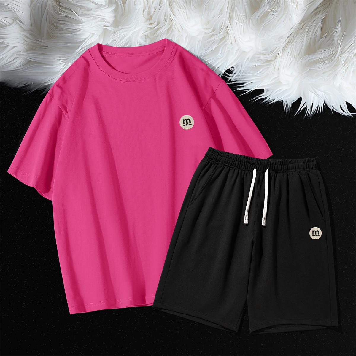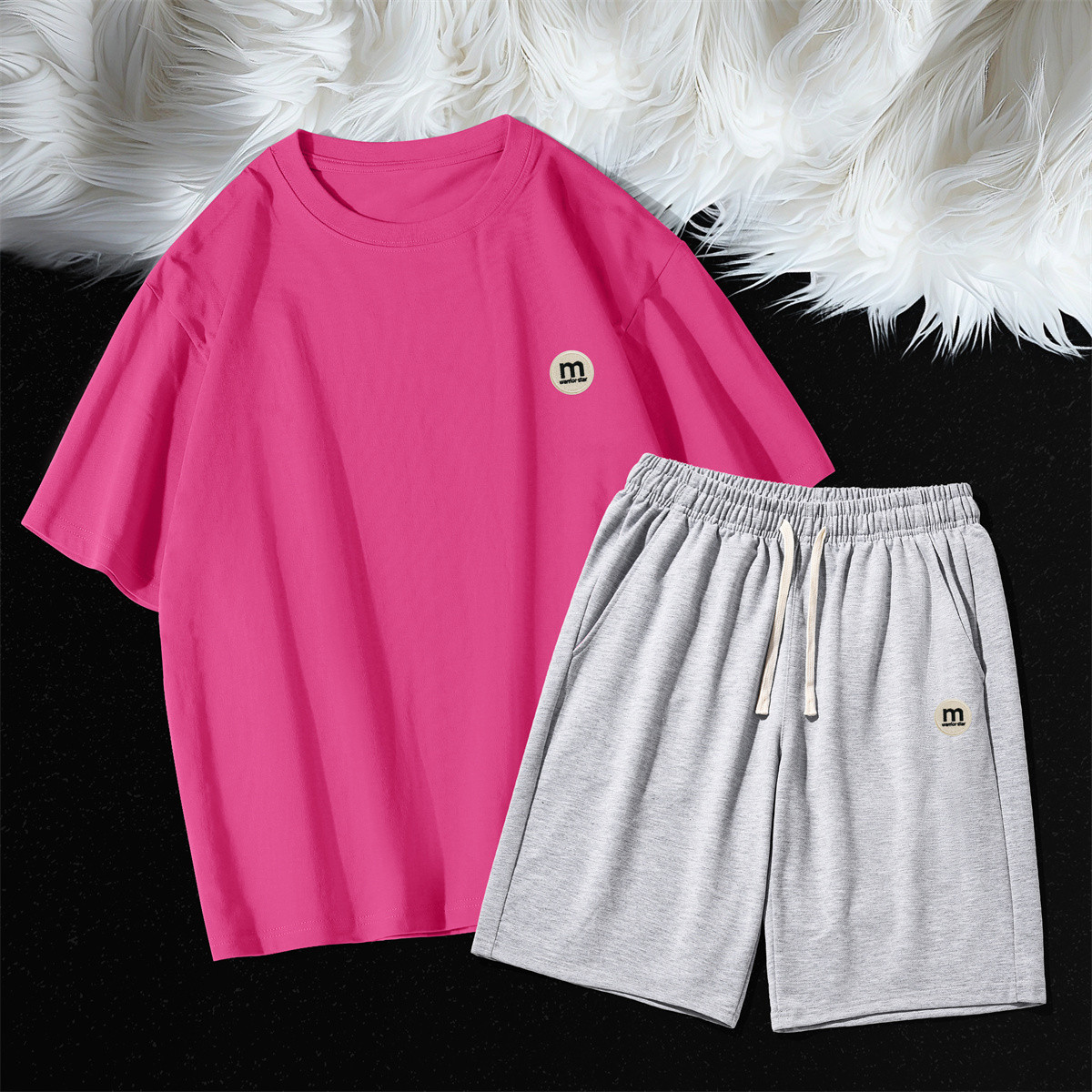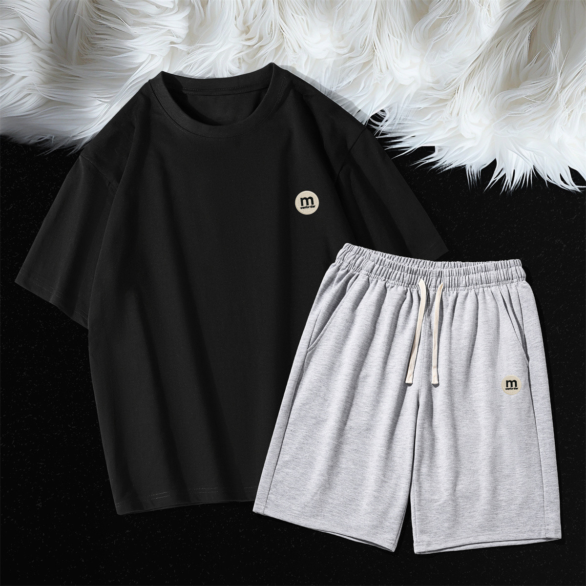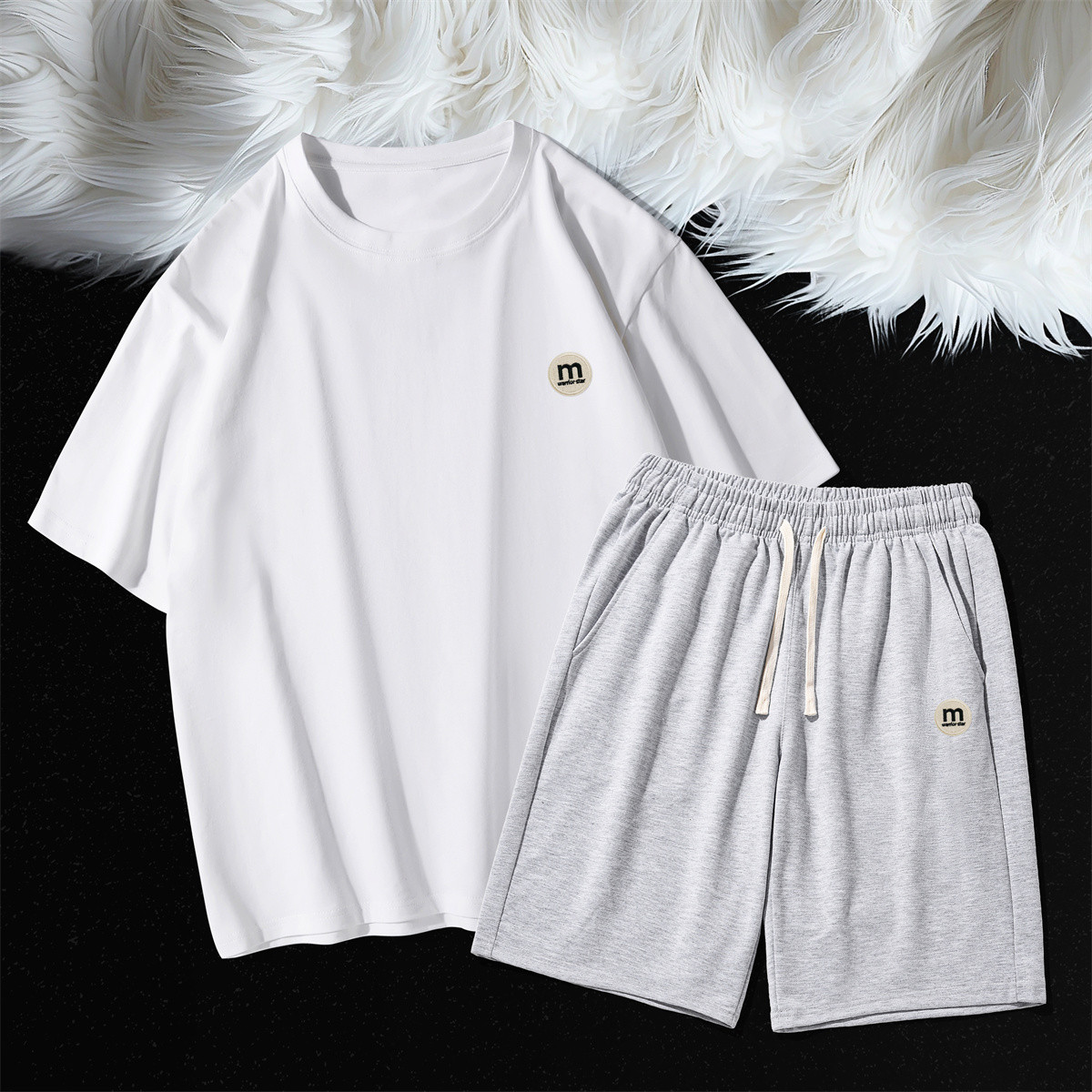 【纯棉舒适套装】夏季纯色基础百搭运动套装女时尚休闲两件套 028883