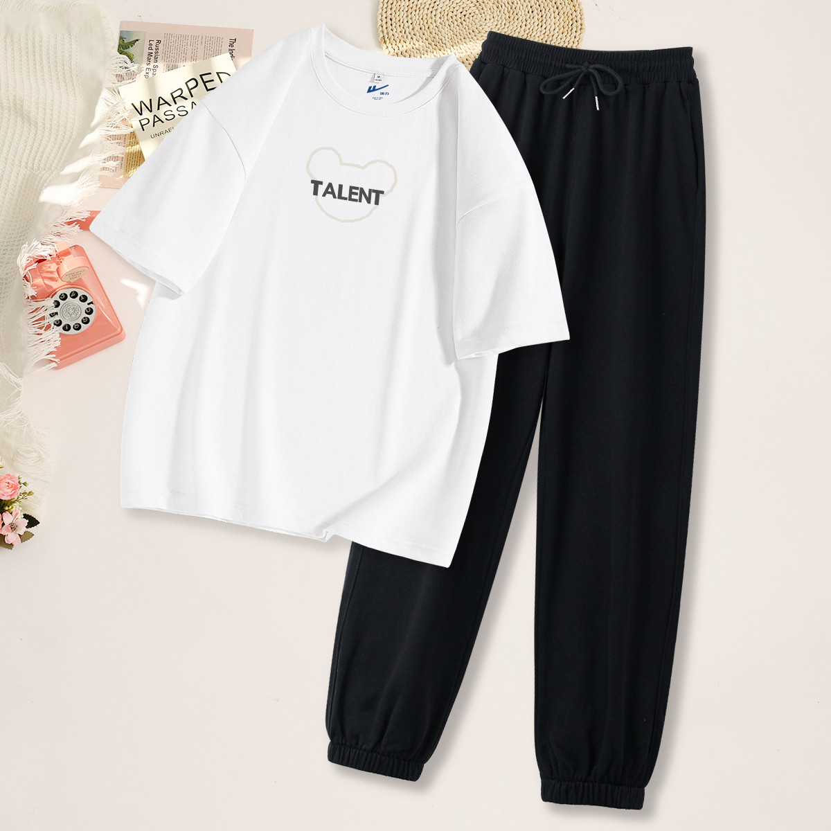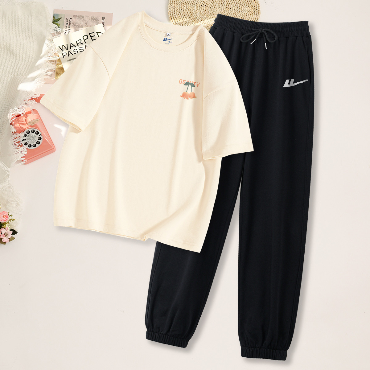 【女装】夏季女式运动套装休闲橡筋收脚裤+纯棉宽松T 772627
