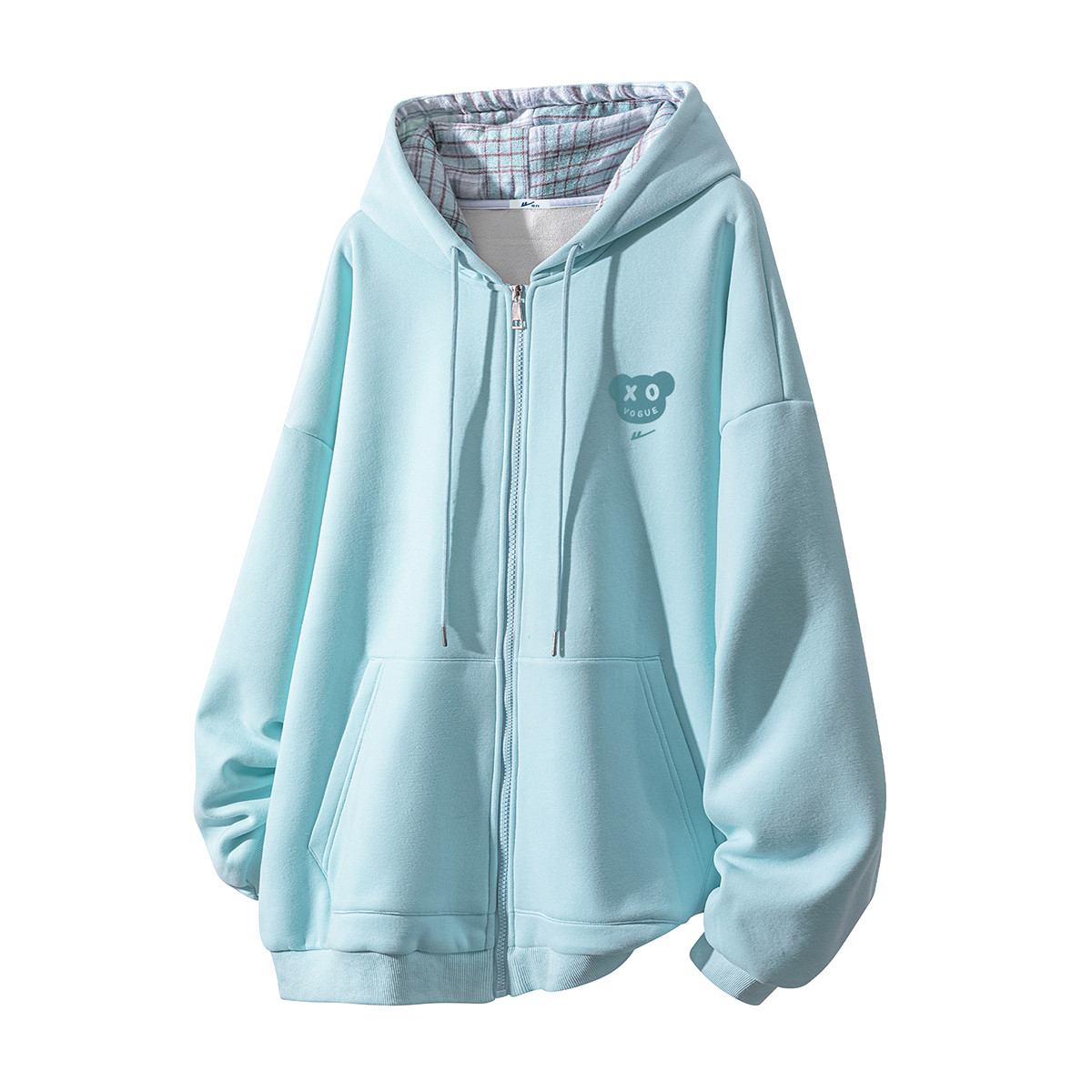 卫衣外套男女款美式复古纯色拉链运动开衫情侣连帽上衣潮百搭外套 038483