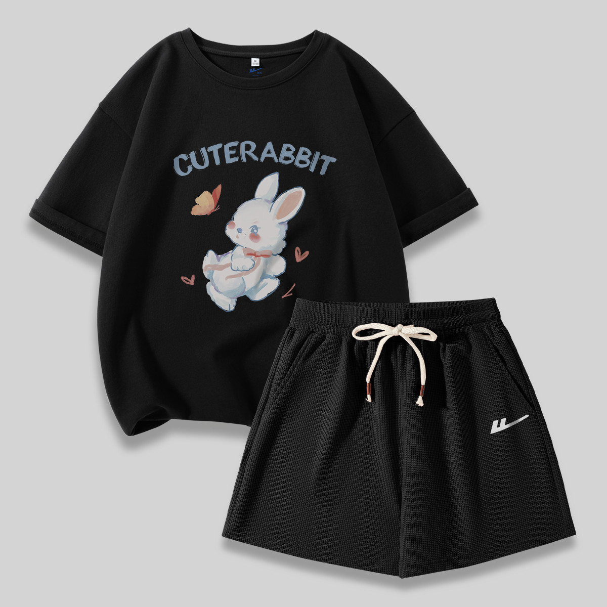 【女装】夏季女式运动套装华夫格三分短裤+宽松T两件套 277907