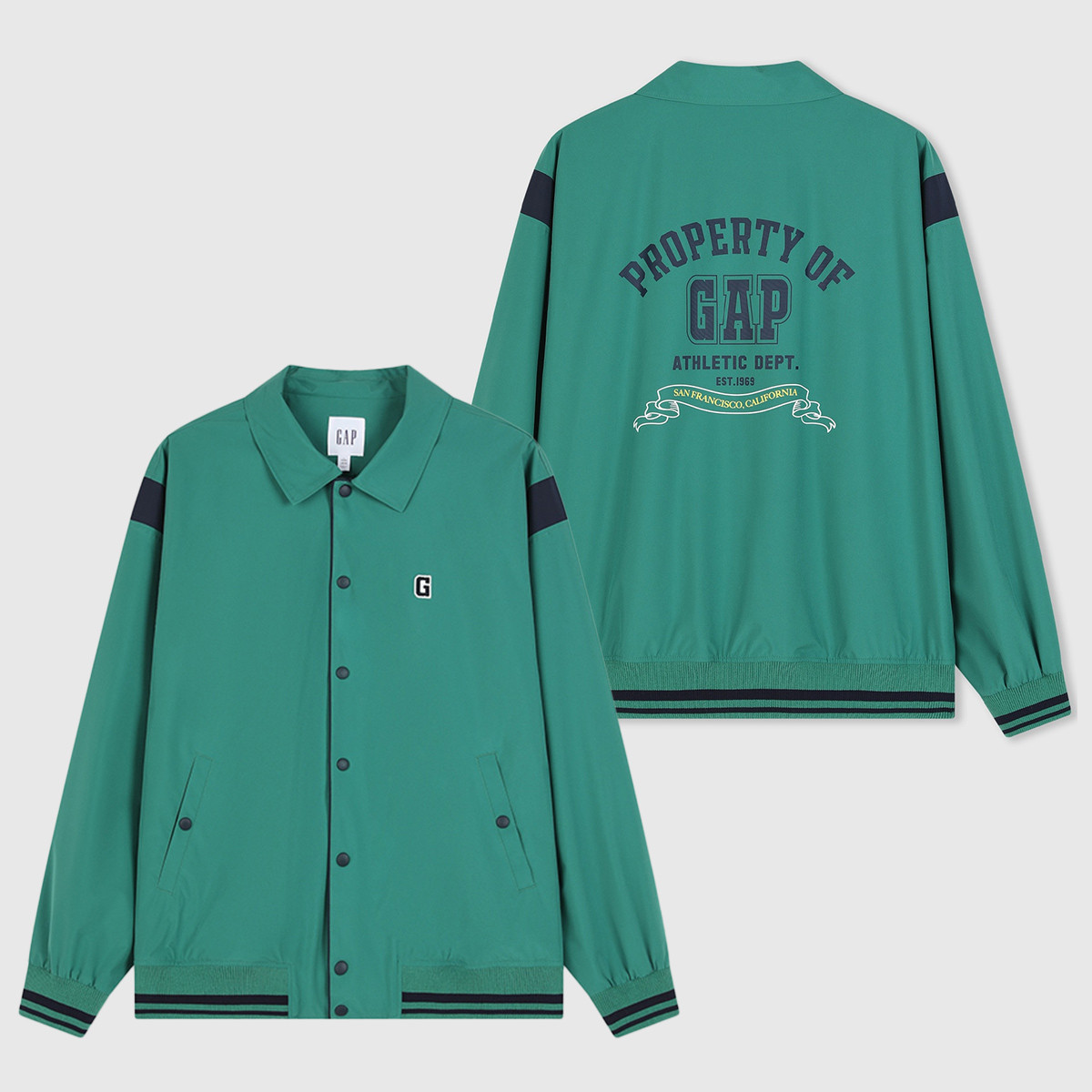 Gap男女装春季LOGO条纹复古夹克宽松翻领情侣外套877507 968922