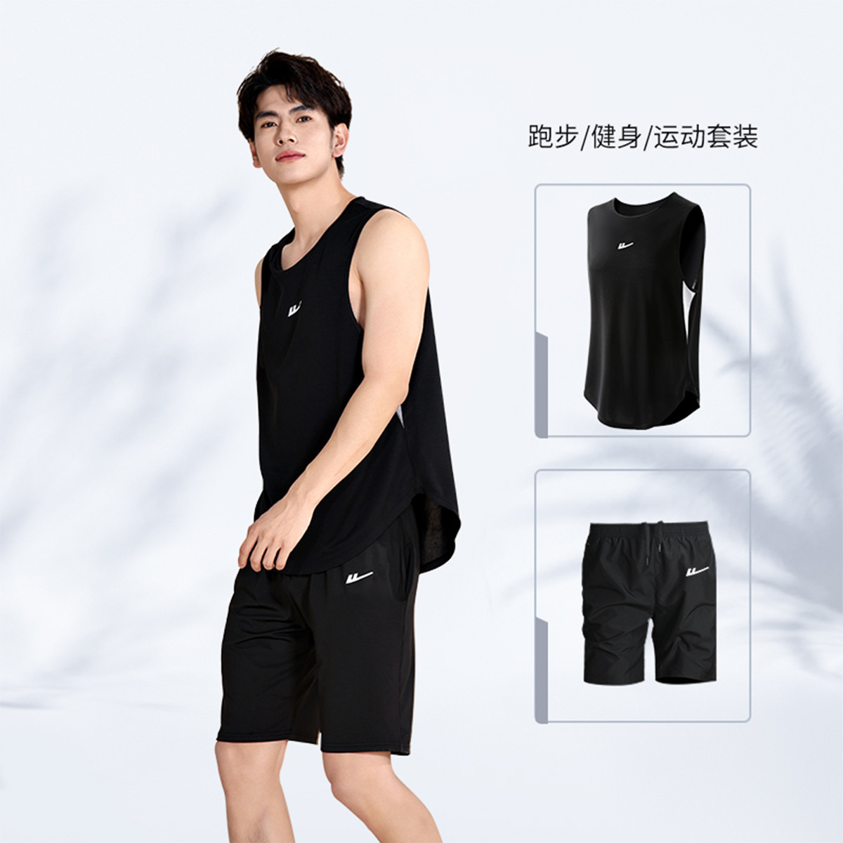 【100%纯棉】日系简约潮牌夏季纯棉背心+五分短裤运动套装男 207763