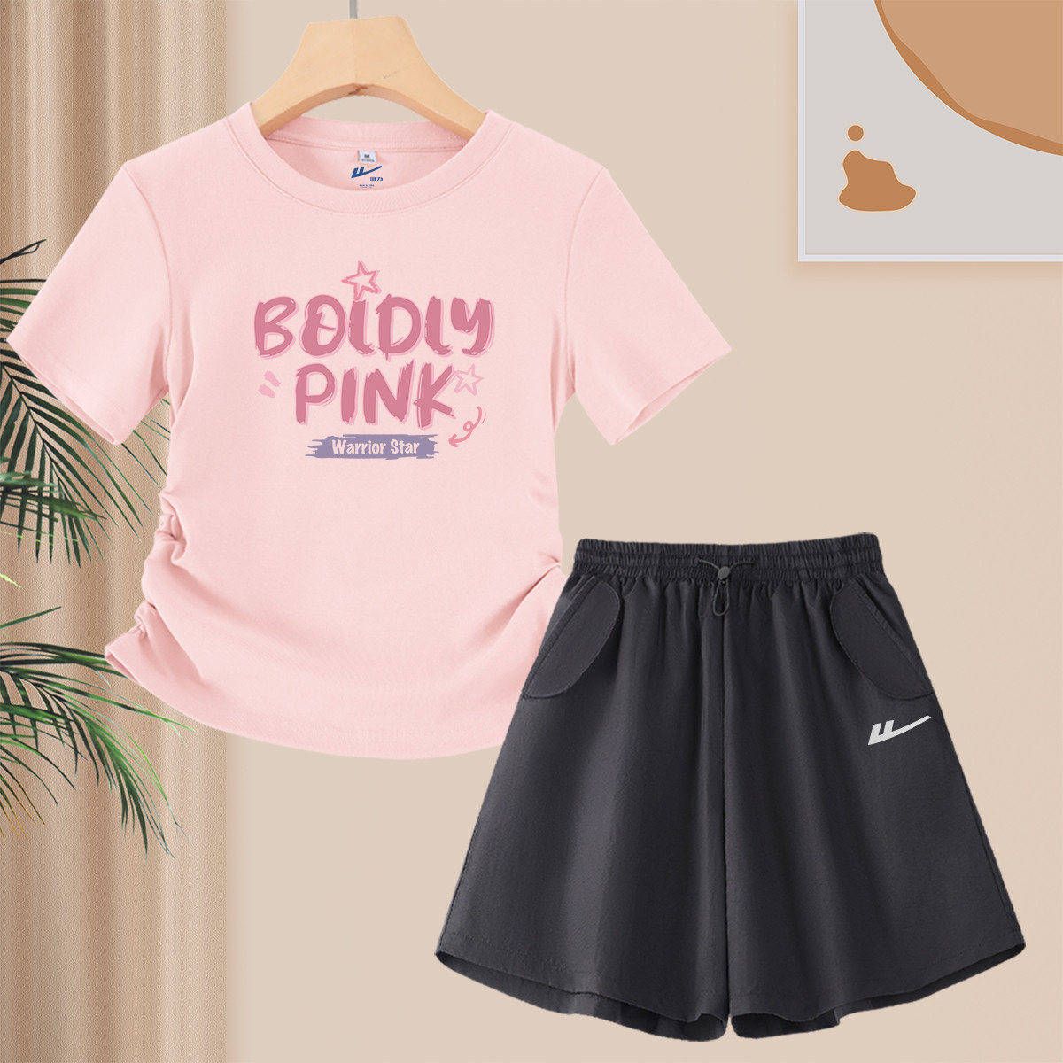 【女装】夏季运动套装女抽褶短款T恤+工装三分短裤小个子两件套 923283