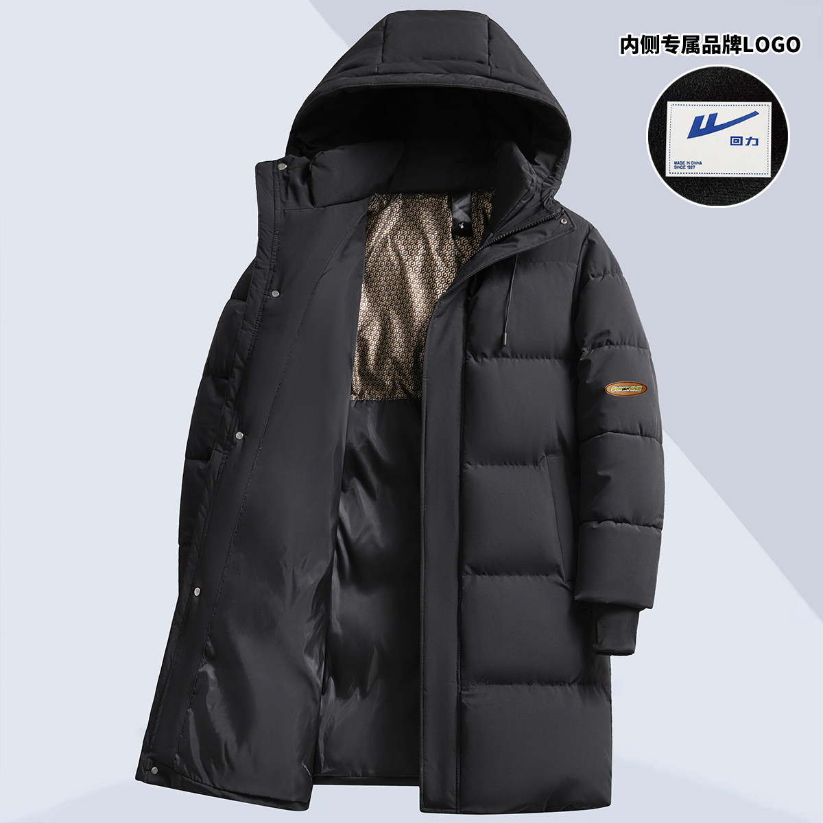 回力纯色棉服连帽中长款青少年冬季夹棉加厚保暖百搭棉服外套 464595