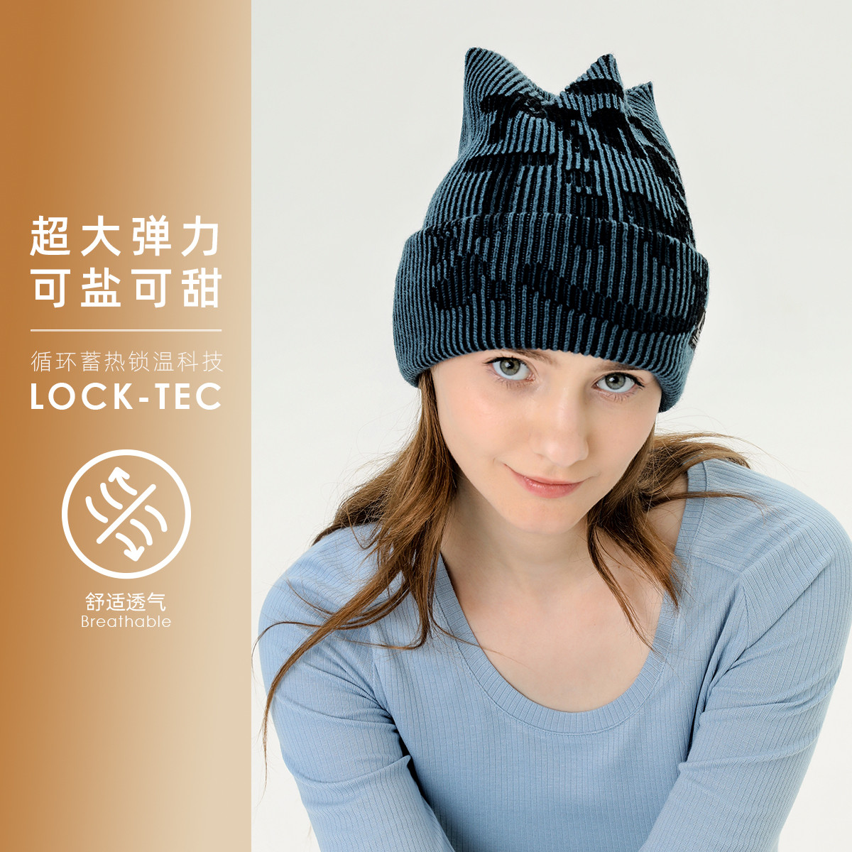 女式秋冬外出百搭防寒保暖针织冷帽大头围显脸小精灵帽 478861