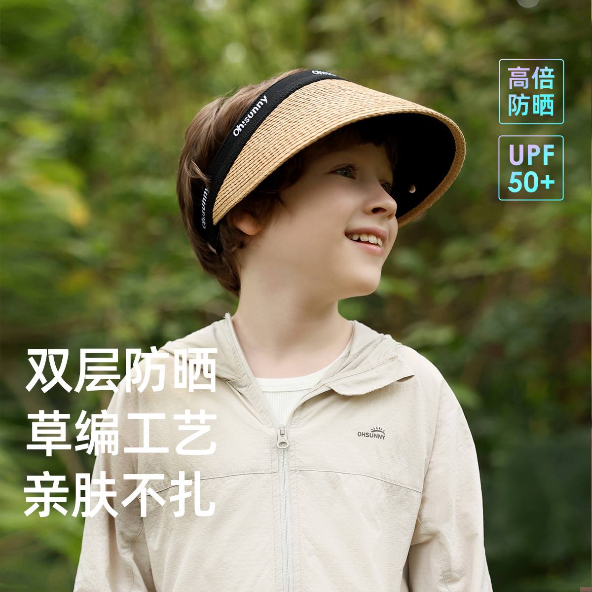 2025儿童防晒草帽春夏防紫外线大檐遮阳男女同款童空顶帽子 811661