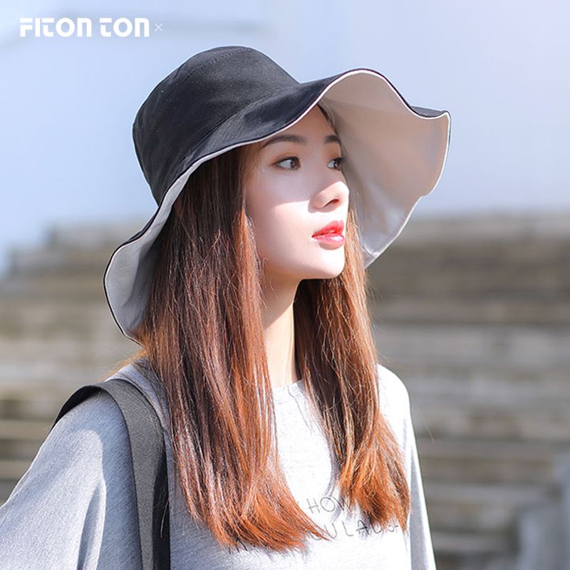 FitonTon遮阳帽女渔夫帽夏季户外防晒帽太阳帽百搭帽子女双面可戴