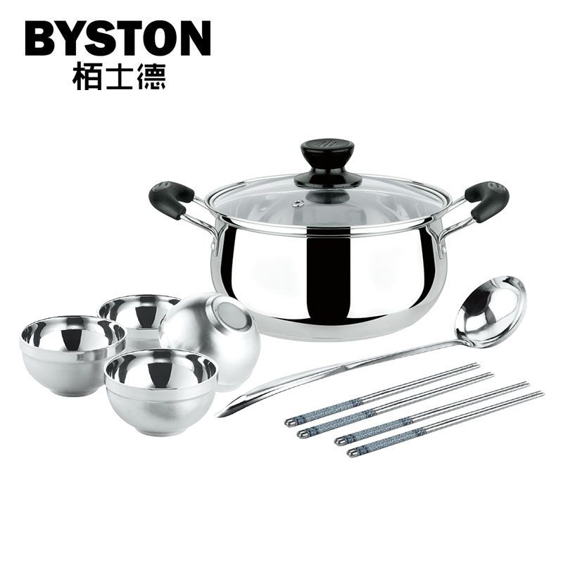 栢士德BYSTON不锈钢全家福十件套BST-030 汤锅 +碗4个+4对筷子+长勺