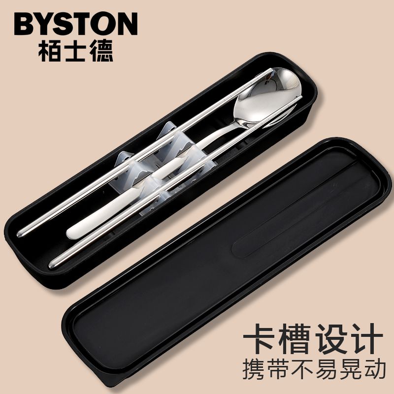 栢士德BYSTON 欢乐颂套装不锈钢筷子勺子收纳盒便携套装 BST-124D