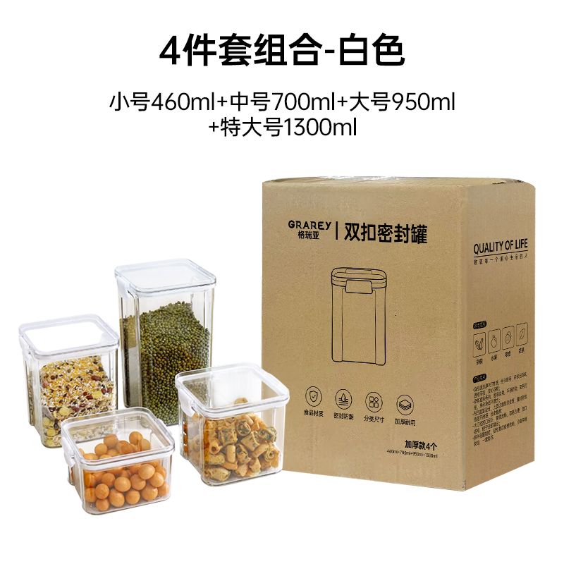 格瑞亚双扣密封罐4件套-超厚款 460ml+700ml+950ml+1300ml