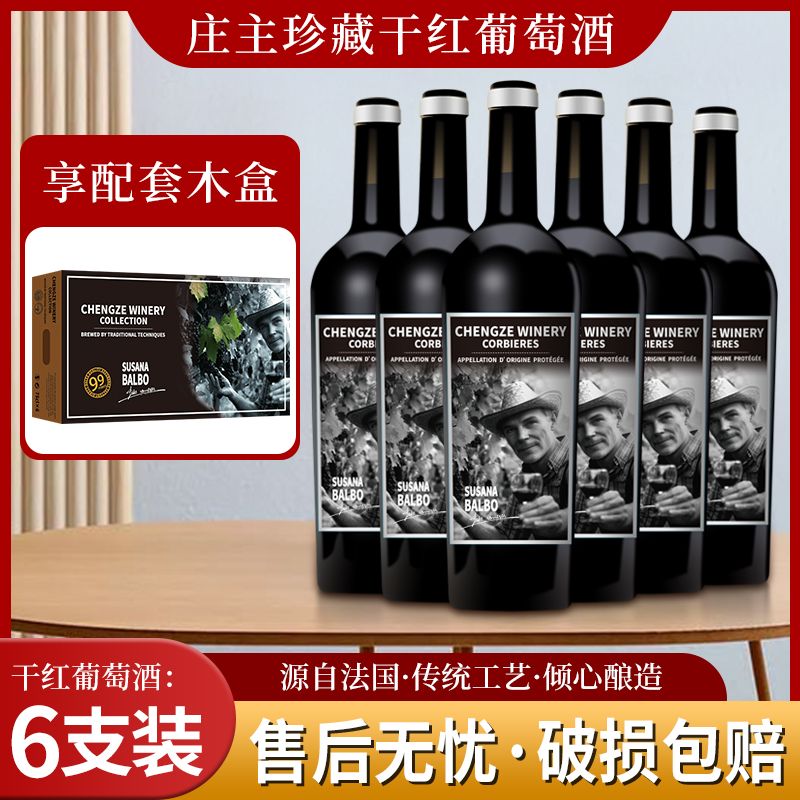 法国进口红酒整箱承泽酒庄珍藏干红葡萄酒750ml*6支木盒装高档优选礼盒