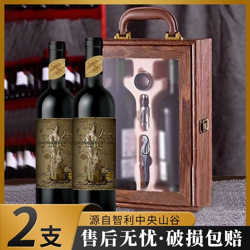 智利进口赤霞珠红酒礼盒装藤蔓干红葡萄酒13度双支高档宴会聚餐