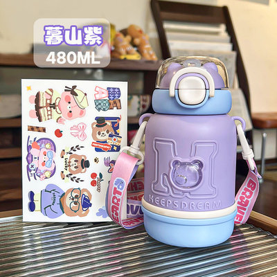 小茶日记 摩卡饼干熊系列保温杯 暮山紫 480ml