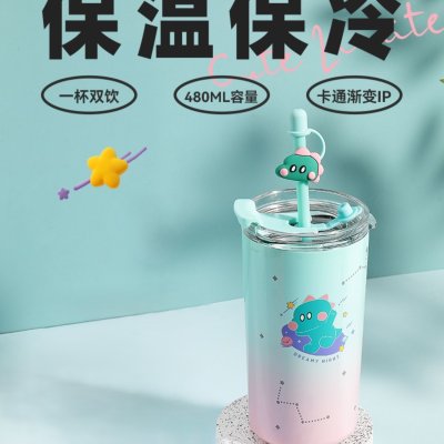 FACE 清新不锈钢吸管保温杯 哇哇龙 480ml